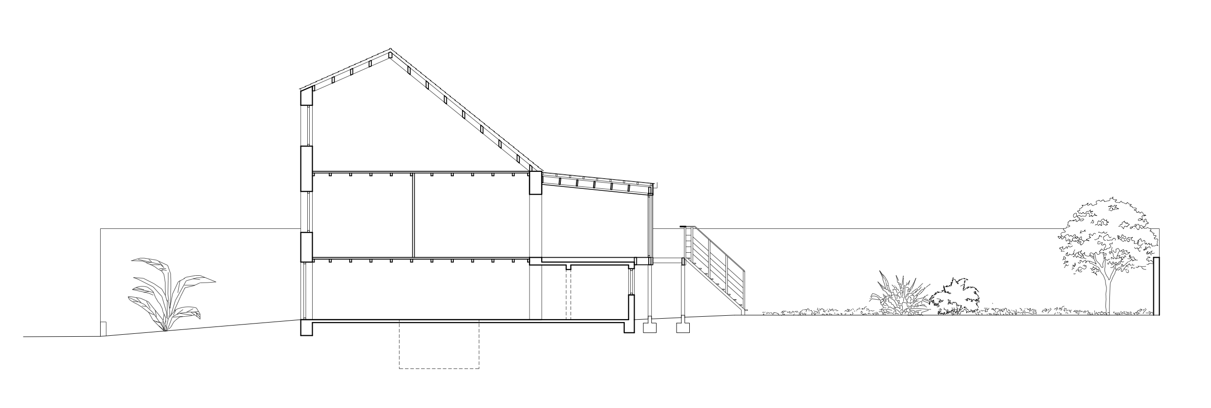 La maison en pierre est atypique avec ses deux façades dissemblables comme les deux visages d’une créature fantasmée. Dans le style des maisons nantaises, les pièces de vie se trouvent au premier niveau, surplombant les jardins et libérant les espaces du rez-de-chaussée pour des usages annexes de la maison (stockage, laverie, cave etc.). La commande est ouverte, concevoir une amélioration de l’existant pour les années à venir et les évolutions de la famille qui y vit, en commençant par le réaménagement de l'ancienne véranda pour l'intégrer dans les espaces chauffés de la maison.