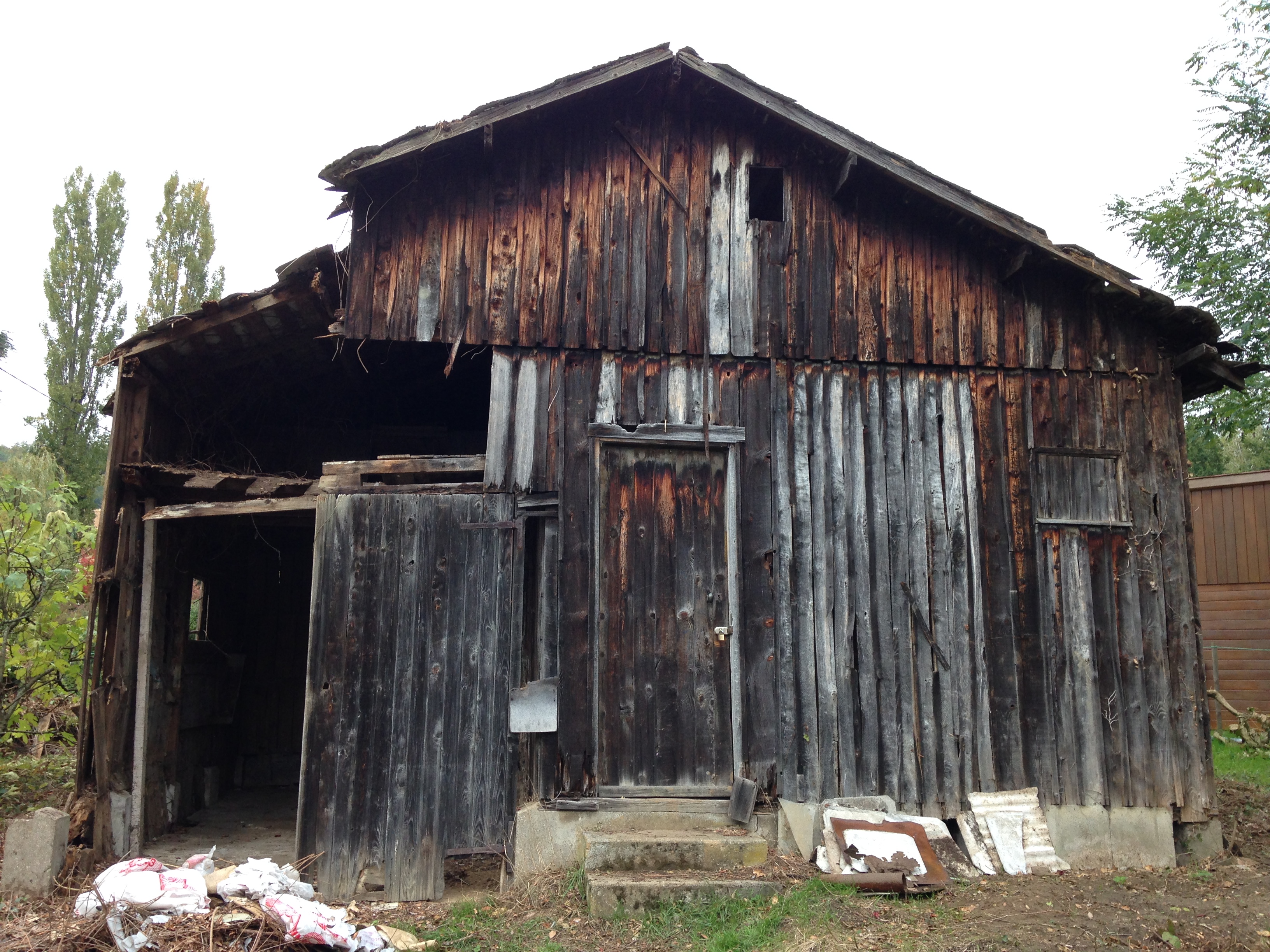 Ce projet est avant tout la reconstruction à l'identique - en terme de gabarit, de matériaux et de mises en oeuvre - d'un petit bâtiment agricole présent sur le terrain de clients pour lesquels nous avions déjà réalisé un projet par le passé. L'enjeu principal était d'y intégrer un atelier de restauration de meubles autonome, avec son coin nuit sa petite cuisine et sa salle d'eau, le tout en conservant la fonction première du bâtiment qui servait à abriter une voiture. Faire sens et chercher la richesse spatiale interne en effaçant toutes traces de notre intervention depuis l'extérieur.