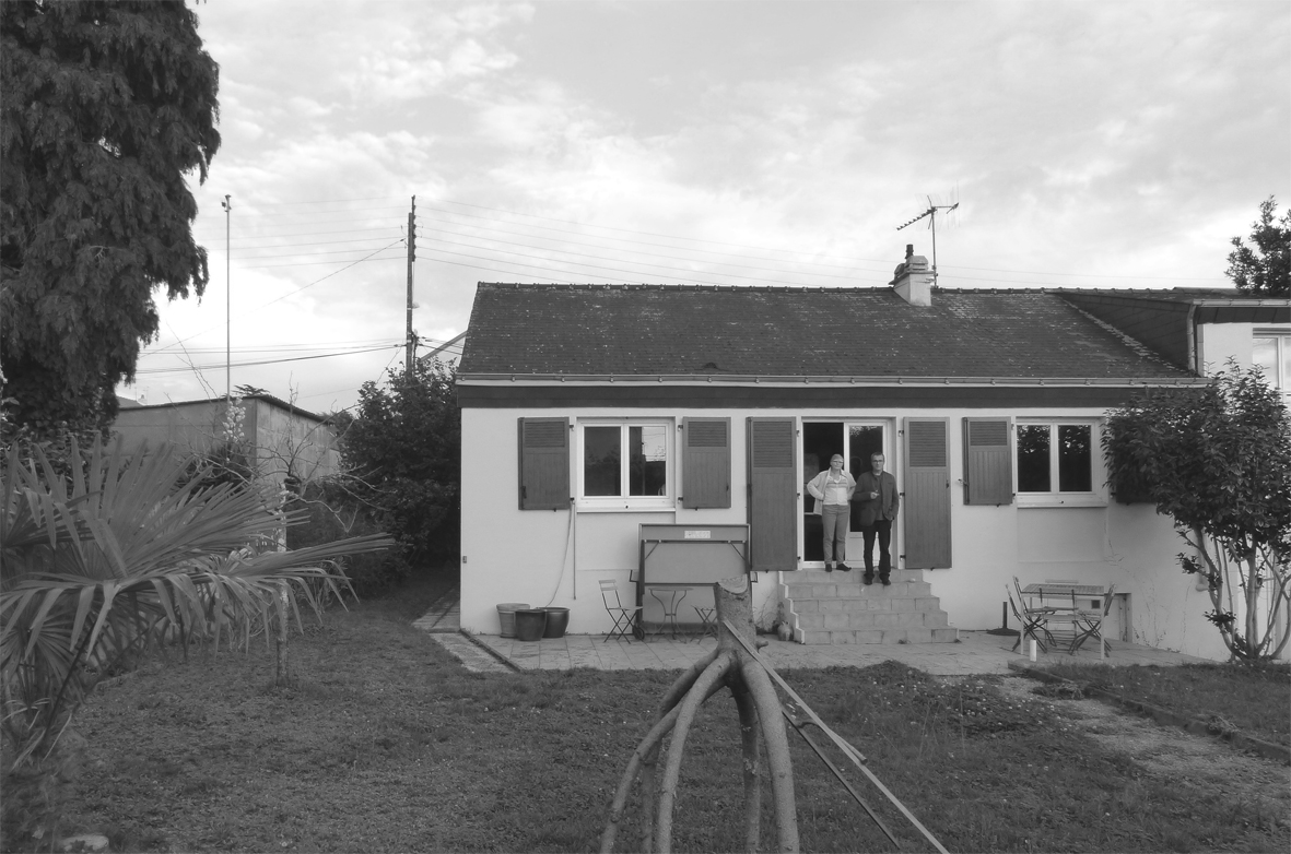 Descriptif technique : La terrasse surélevée est réalisée en structure poteau poutre sur laquelle repose une dalle bois. Ce système constructif autorise un porte-à-faux en péripherie, marquant le détachement de la terrasse par rapport au sol. La structure acier galva est fixée à la dalle et en différents points du garde-corps, évitant ainsi tout élément de contreventement. La recherche d'une unité architecturale s'exprime à travers la continuité du bardage bois à claire-voie en façade Nord. Il habille le pignon nouvellement isolé et se prolonge vers la terrasse pour former un filtre visuel avec le terrain voisin.