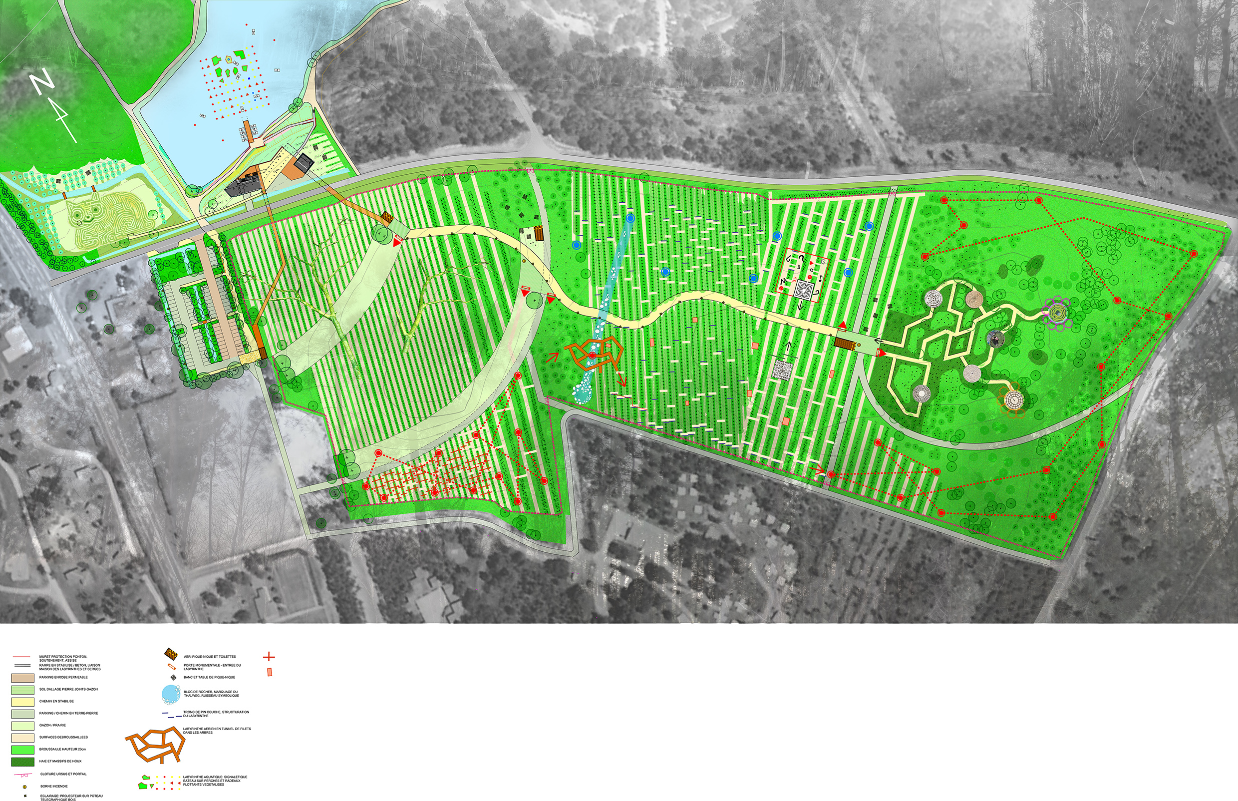 La Maison du Mysterra est la clef d'un parcours graduel qui embrasse divers points de vues à capter sur site. C’est un moment en surplomb, une architecture paysage, belvédère, qui articule le lieu où elle prend place. Les passerelles lient le lac et le parc, la partie ouverte à la partie sous douane. A l'étage, l'accueil boutique reçoit le visiteur, qui pénètre dans le parc au détour de la salle d'interprétation. En partie basse sont installées les activités avec un prolongement extérieur : les salles de réunions et le café ainsi qu'un vaste espace couvert à l'ombre du bâtiment.