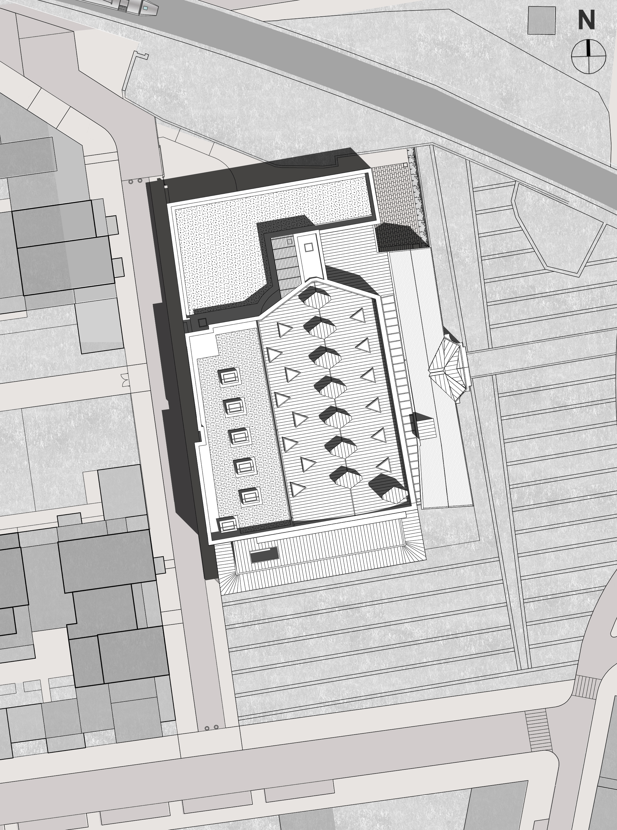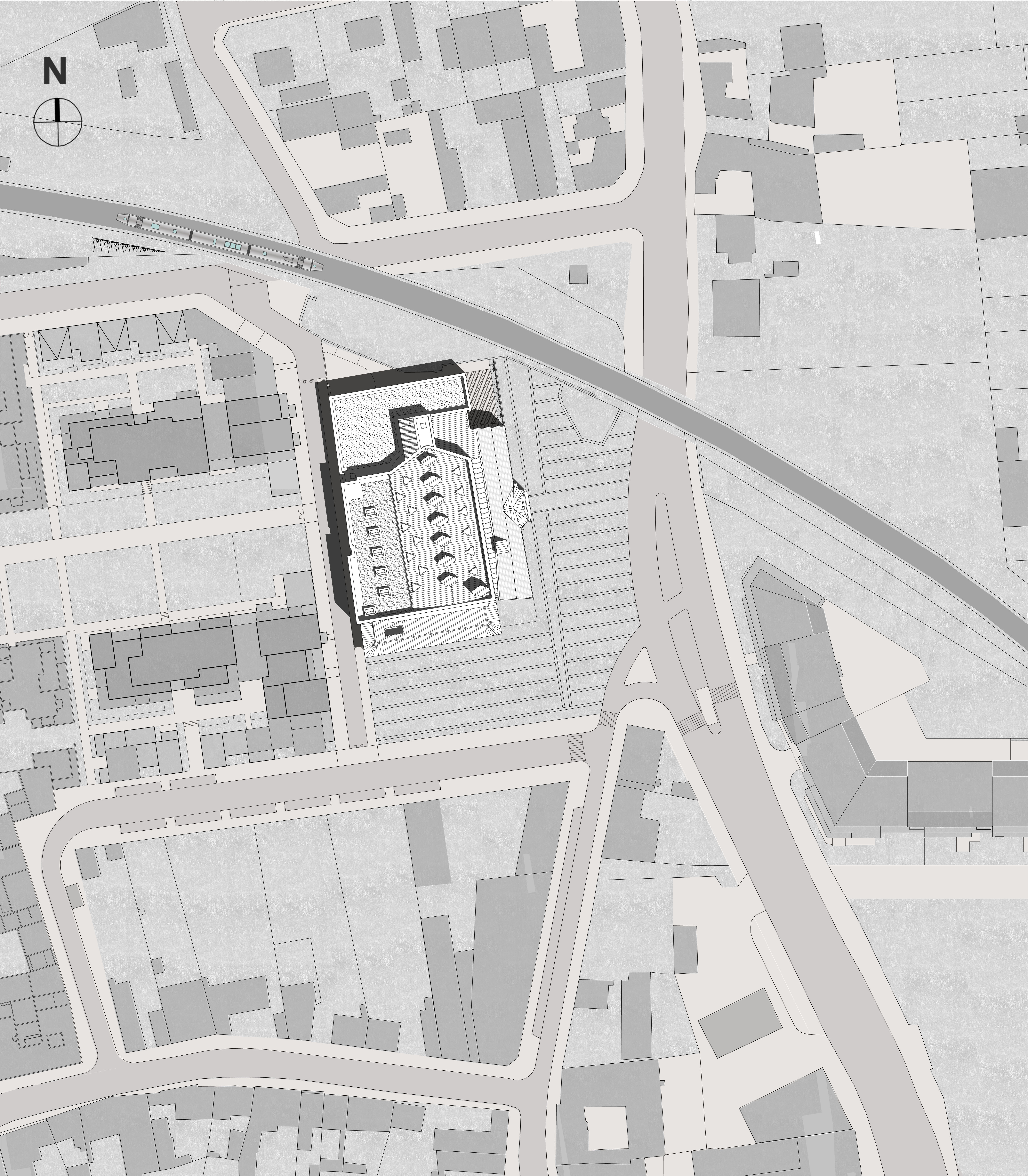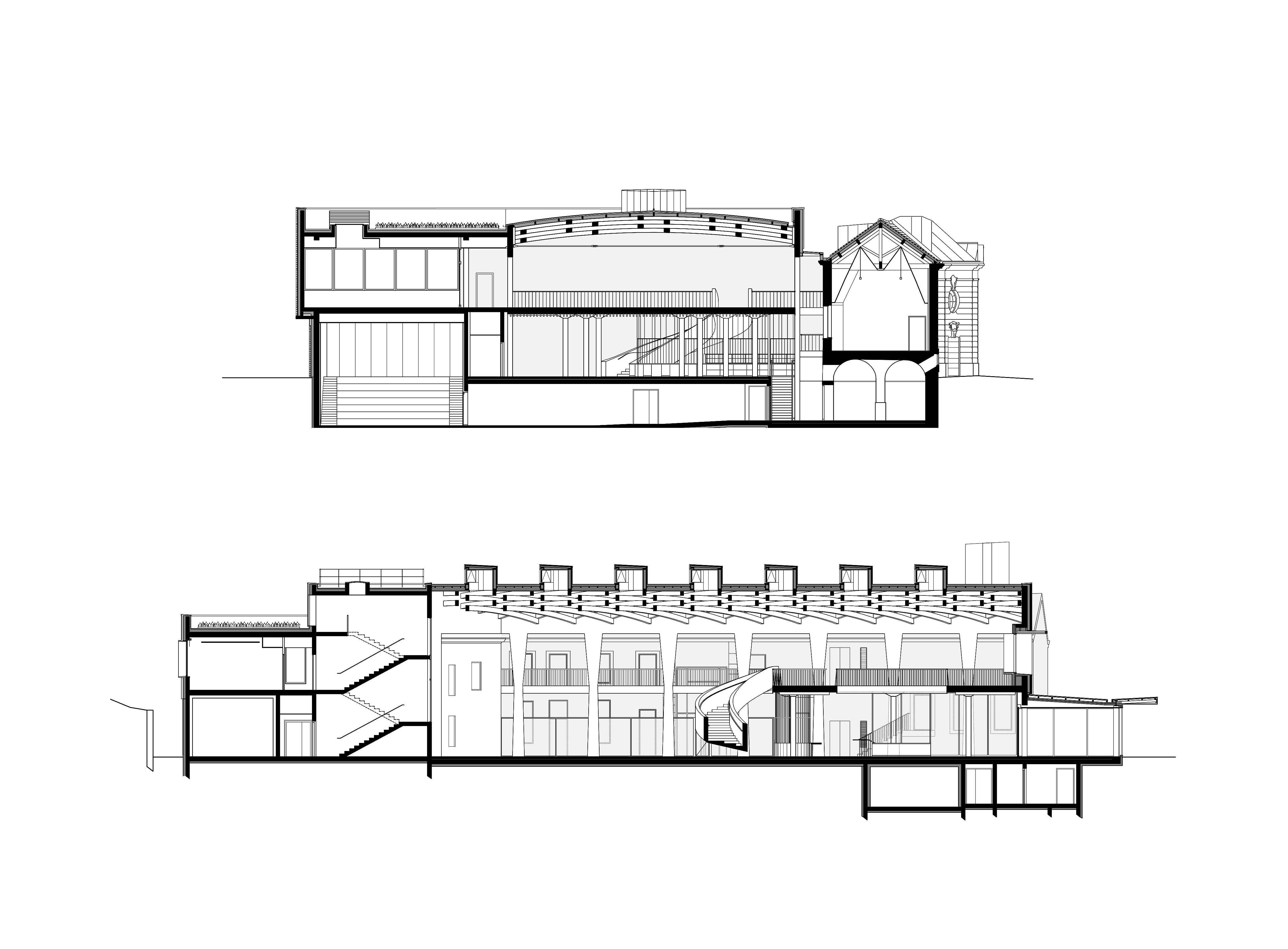 Ce projet consiste en l’association harmonieuse d’un petit château du 18ème dont la pièce maîtresse est un portail inscrit avec un bâtiment contemporain accueillant principalement les espaces publics de la médiathèque. 2 échelles, 2 architectures. Le bâtiment neuf s’enroule autour de l’ancienne cour fédérant toutes les parties. Ce vaste vide structurant est couvert d’une grande nappe structurelle en bois distillant sa lumière zénithale naturelle dans les salles de lecture. Les textures bien que de colorations et tonalités différentes fabriquent un dialogue subtil entre les deux entités.