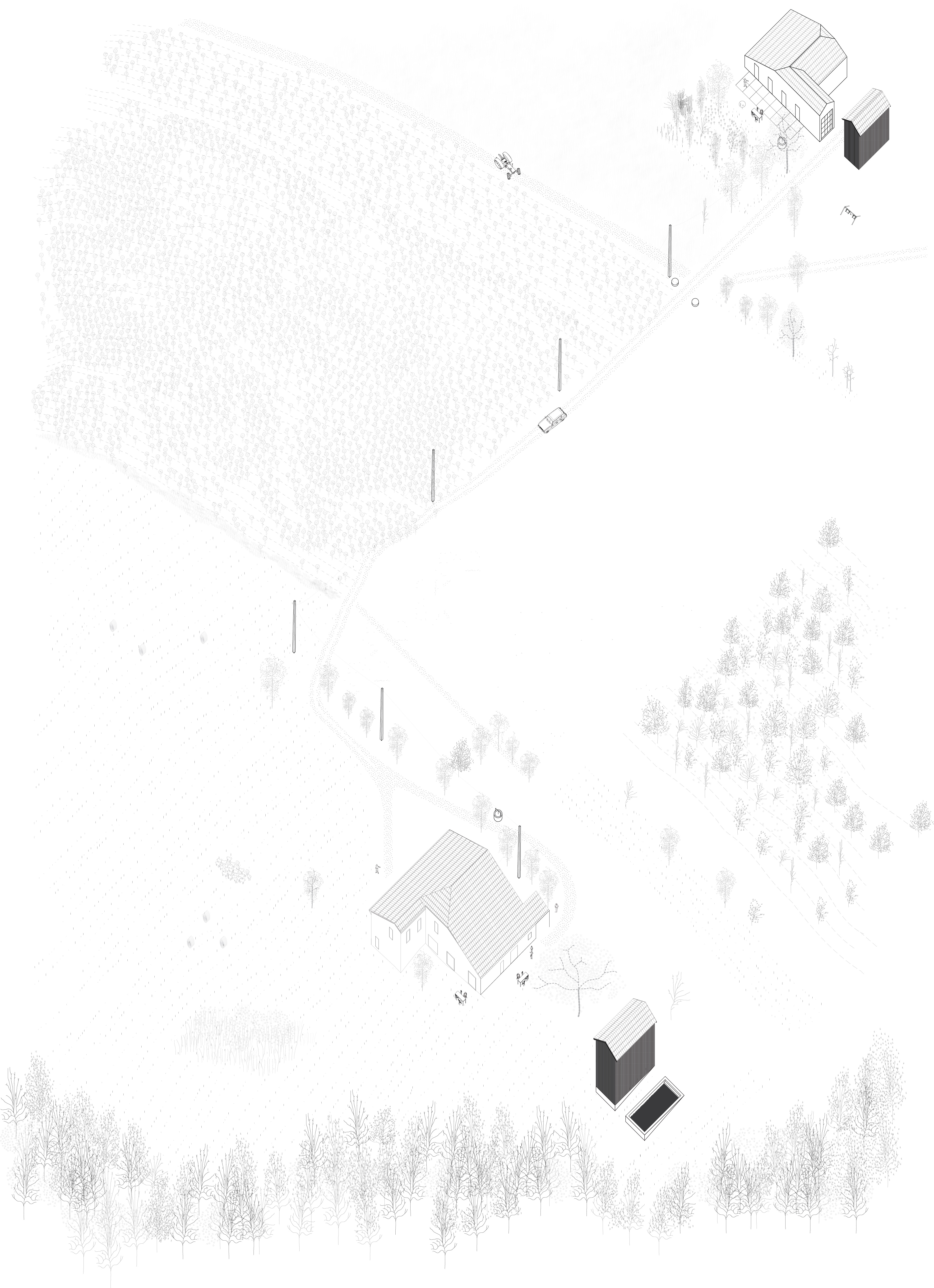 Le projet concerne la réhabilitation d'une ferme agricole en habitation. Le site se trouve en milieu rural à proximité d'une forêt de chênes. La ferme répond à deux modes de vie distincts : un usage régulier durant les week-end par un couple et un usage plus sporadique par le reste de la famille durant les périodes de vacances. Le projet organise les espaces selon le principe des poupées russes : une « petite maison de week-end » à l’intérieur d’une grande maison de vacances. L'identité agricole s'exprime par des choix constructifs contemporains inspirés de la tradition locale.