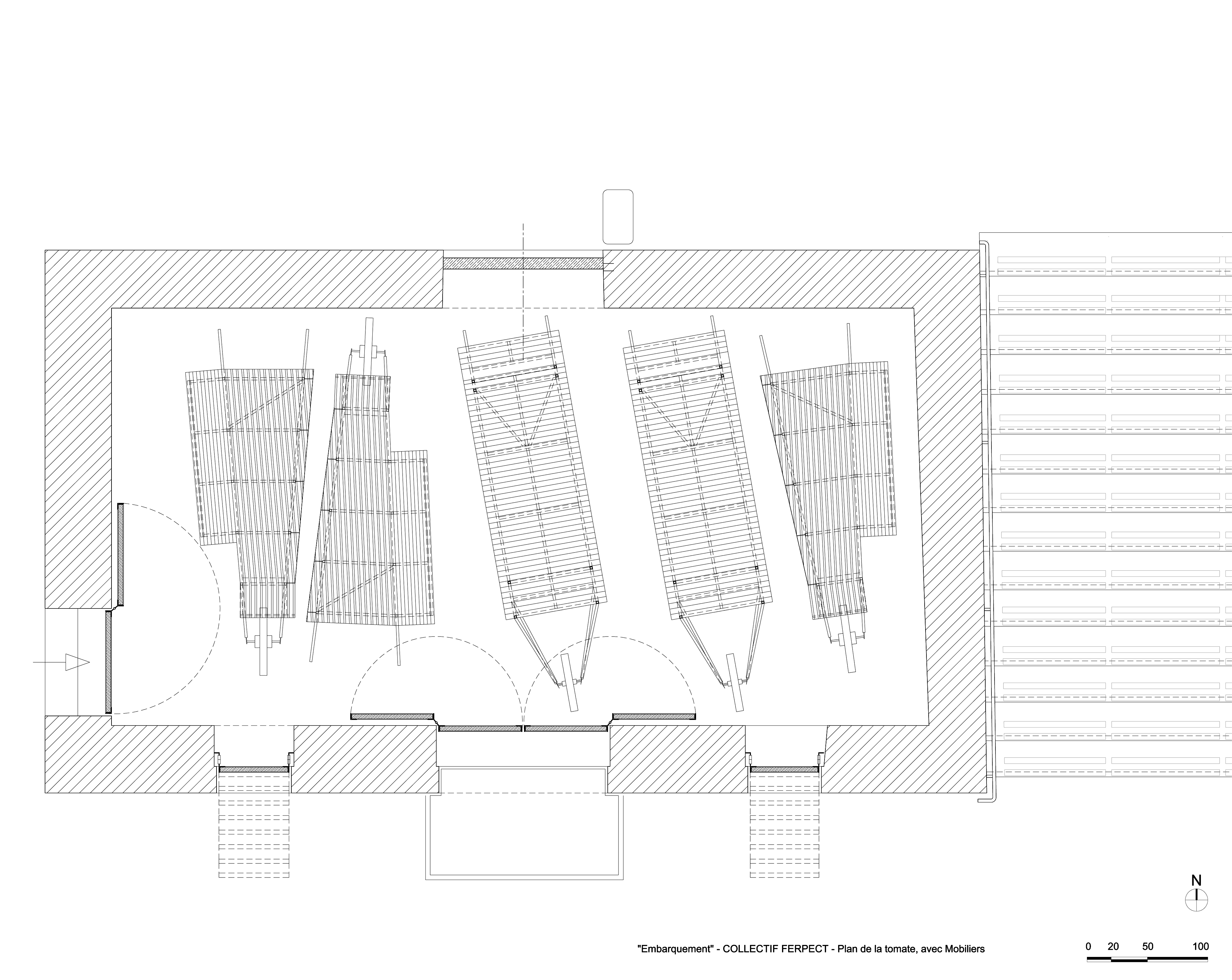 Le projet « Embarquement » est né en 2016 d'une réponse à un mini concours lancé par le Voyage à Nantes dans le cadre du Voyage dans le vignoble. Le projet consiste en la réhabilitation d'un petit bâtiment « la tomate » pour permettre stockage et tenue d'expos et animations sur le port ainsi qu'en la réalisation de mobilier. Le mobilier doit comporter des assises pouvant accueillir une vingtaine de personnes ainsi que des tables permettant de prendre les repas. Il doit pouvoir se ranger dans la « tomate » et être manipulé par une seule personne. En réponse à cette demande d'ergonomie, il a été conçu sous la forme de mobiliers ludiques et roulant. La « tomate » doit être « fermée » de manière à pouvoir sécuriser