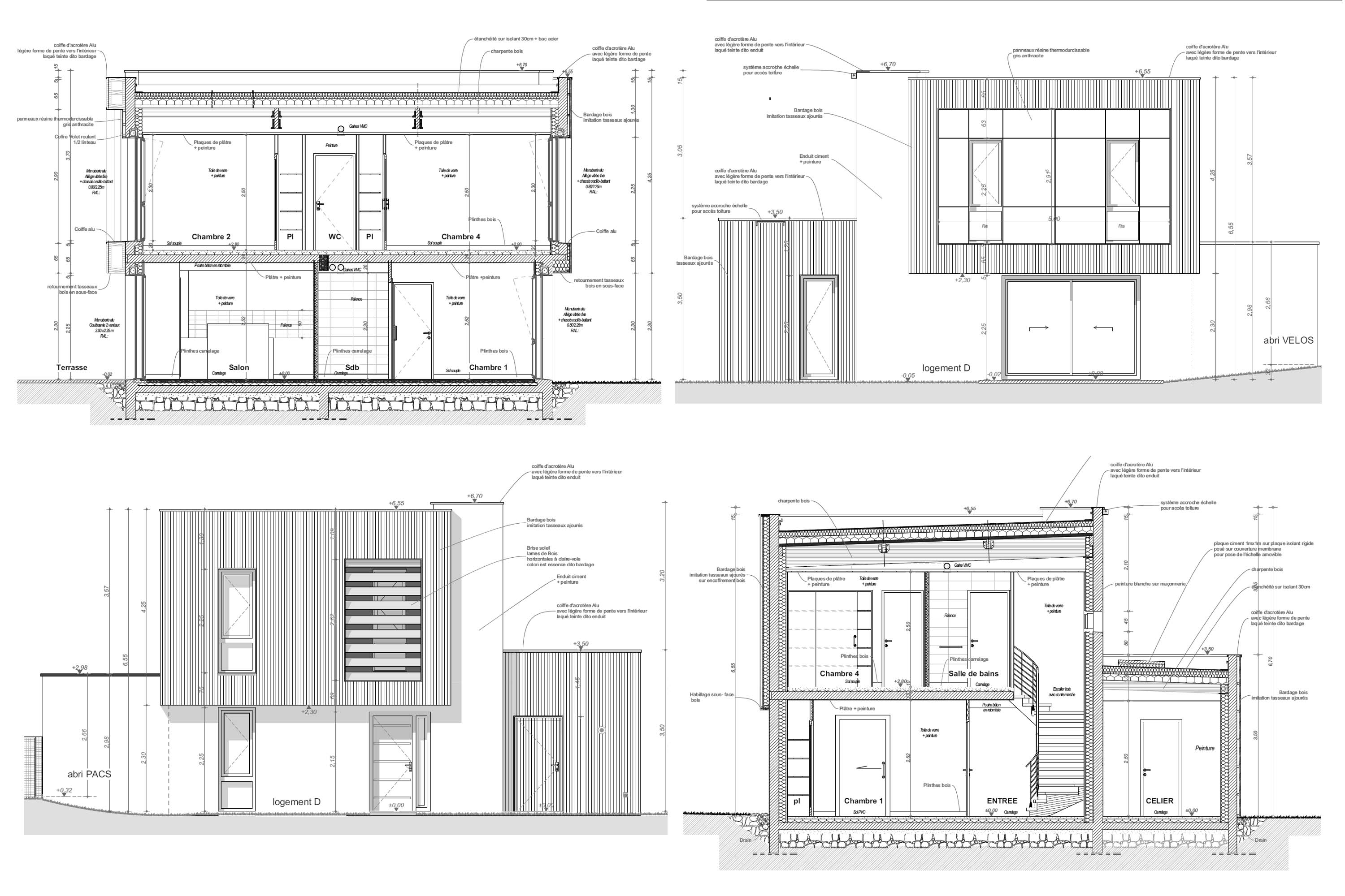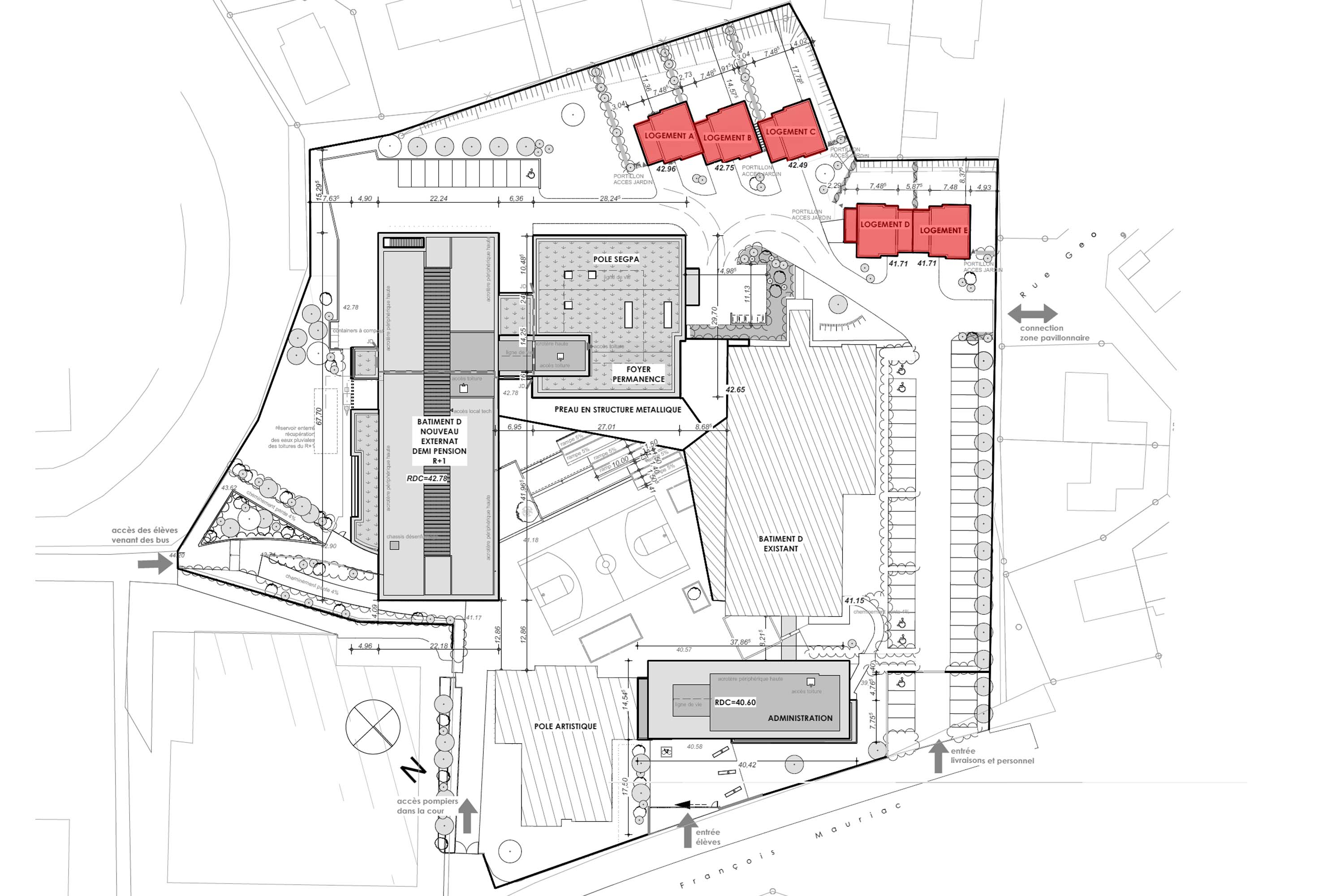 5 logements de fonction neufs pour le collège ANJOU récemment rebaptisé en Collège Simone VEIL. L'emploi de bois pour la création du nouvel externat a servi de prétexte pour utiliser le bois également pour les logements.