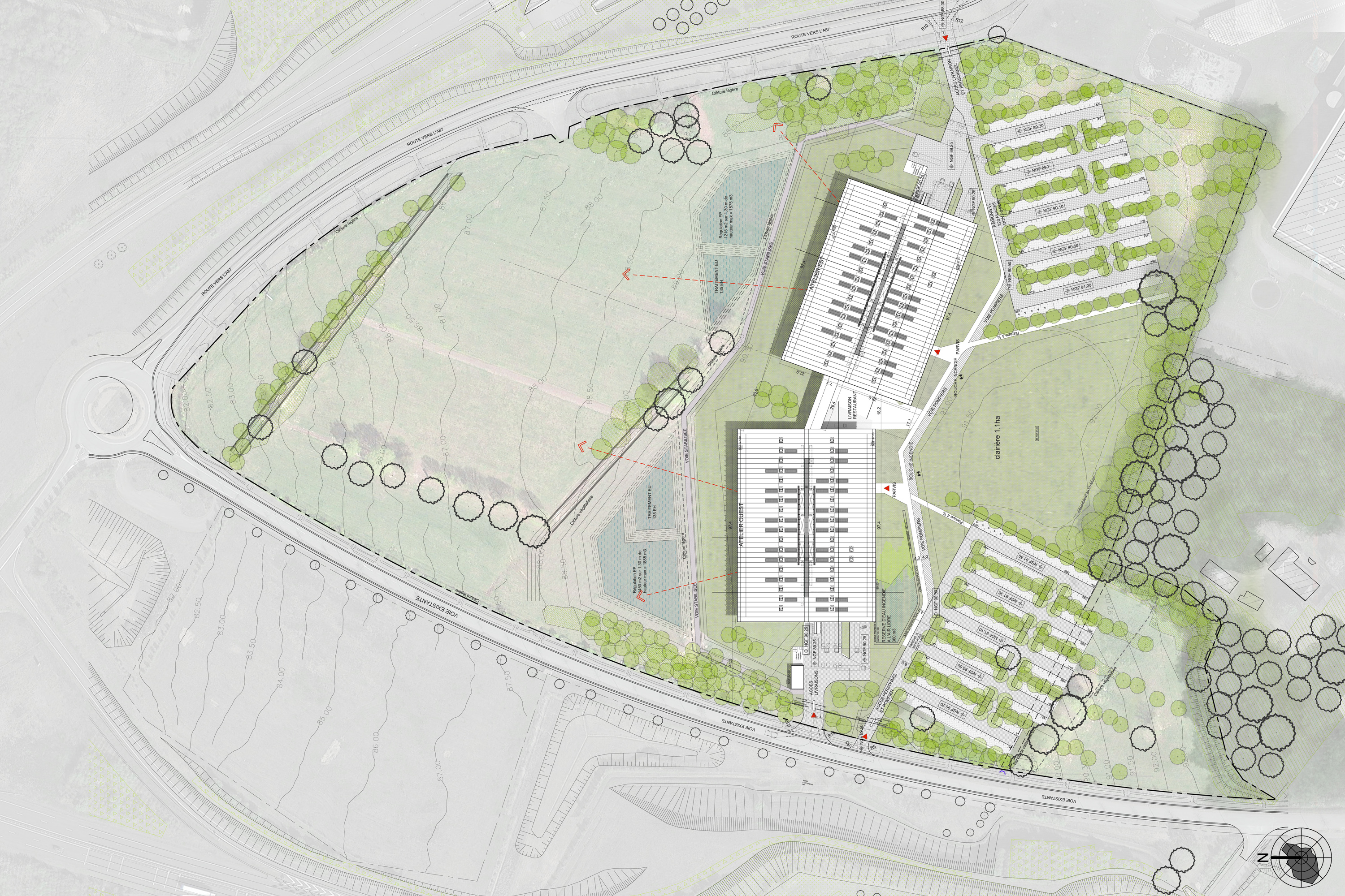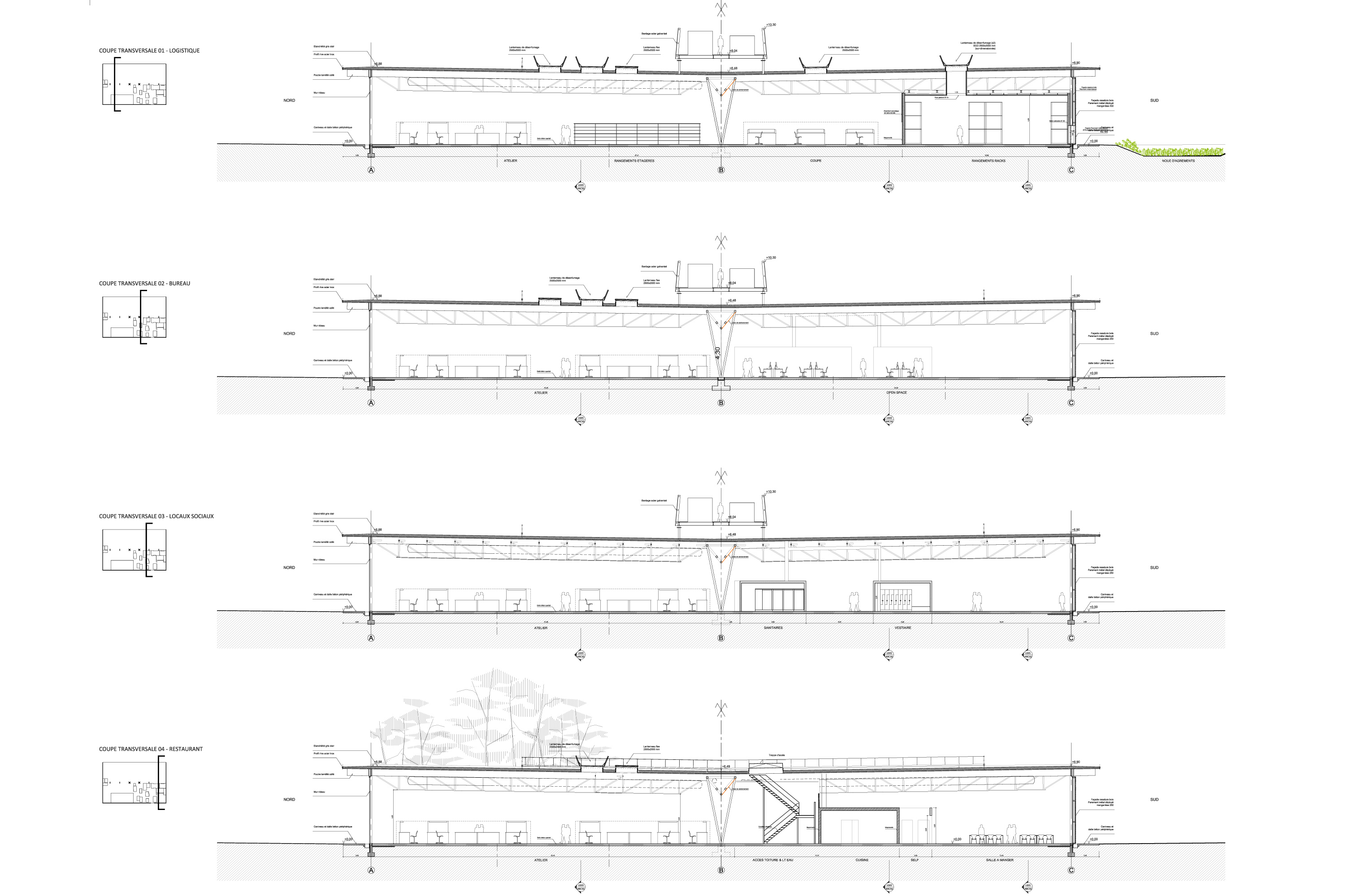 Approche environnementale : Incarnant l’image renouvelée des ateliers de maroquinerie, le projet fait l'objet d'une certification BREEAM niveau very good encadrant aussi bien la gestion du chantier, le choix de matériaux que l'exploitation et le confort du bâtiment. Le mode constructive exploitant la préfabrication et les montages secs, perceptibles depuis l'intérieur de l'atelier, participe également à la relation entre le maroquinier et son cadre de travail. La prise en compte de la lumière naturelle et de large vitrage favorise l'attention à l'environnement, aux essences locales et à la préservation de la faune.