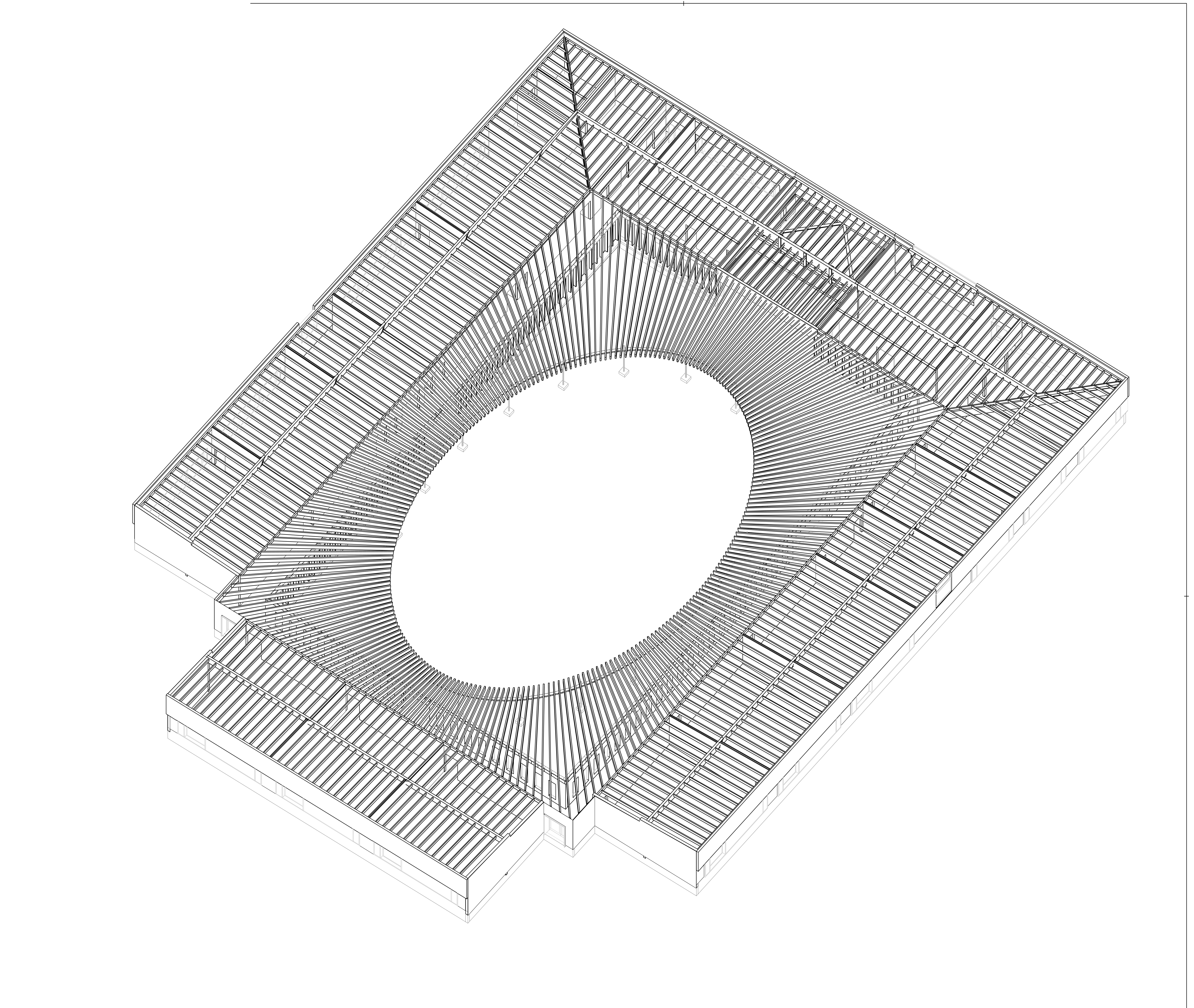 Descriptif technique : A travers sa matérialité et son mode constructif, le projet favorise les circuits courts et les savoir-faire régionaux. Le dessin des charpentes a été pensé de manière à favoriser l’emploi de petits éléments réalisables en bois massif local. Les charpentes sont ainsi intégralement réalisées en bois du Jura, y compris les chevrons rayonnants du préau en lamellé-collé.