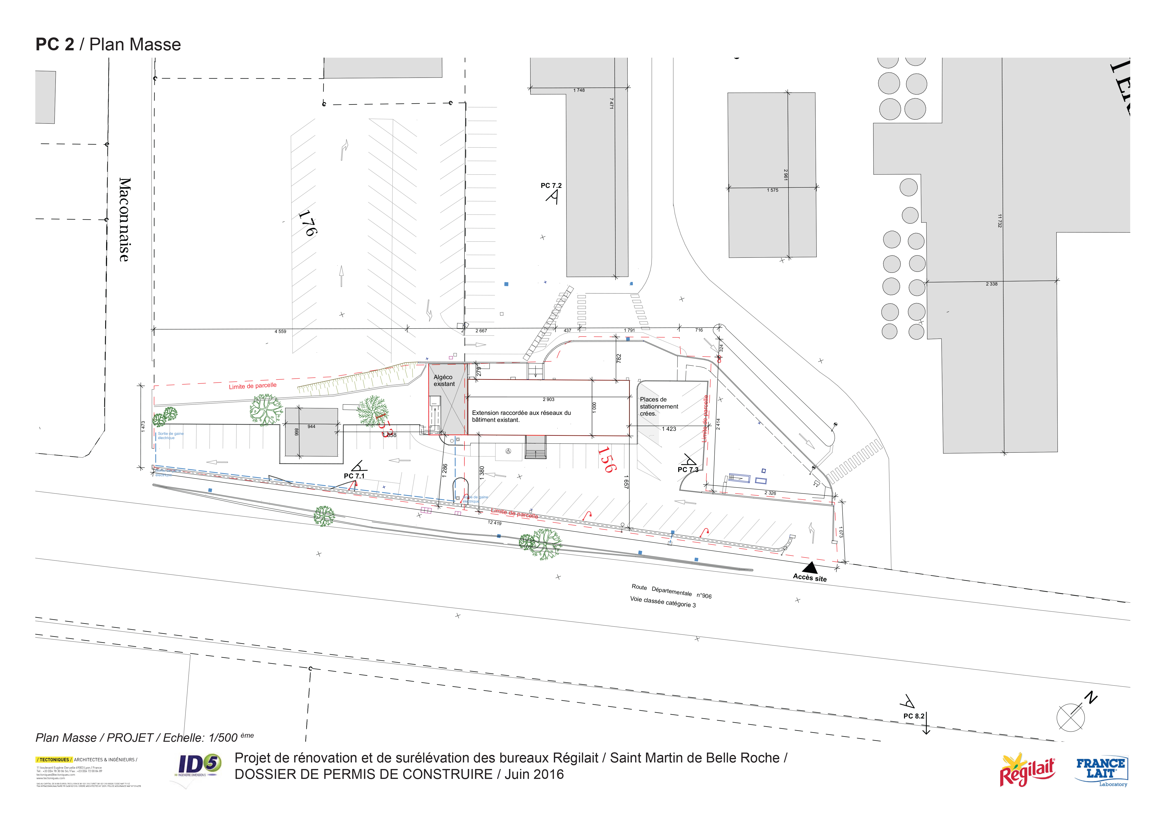 Le projet consiste à transformer l’image et l’architecture du bâtiment, de telle façon qu’il s’affiche in fine, comme une construction contemporaine. Afin de pouvoir isoler les surfaces existantes un mur « manteau bois » est rapporté en applique des façades Est et Nord. Ce mur manteau est constitué d’une structure bois isolée et habillée en panneaux de fibres de bois bakélisées de teinte blanc mat. La couleur retenue évoque l’activité de la marque (blanc mat comme le lait). Les nouveau chassis et les embrasures sont en bois lasuré de teinte miel (la ressource « bois de pays » est valorisée). Ces pièces en bois apportent une bienveillance et une note « écolo » qui éloigne le projet d’une image trop tertiaire et trop technique. Un effet graphique est créé en jouant avec la mise en oeuvre du mur manteau et des trumeaux habillés en bois. Ce rythme composé en façade est accentué par le calepinage des panneaux qui se décale dans la partie créée en surélévation. La surélévation est prévue comme un élément structurel indépendant entièrement construit en bois.