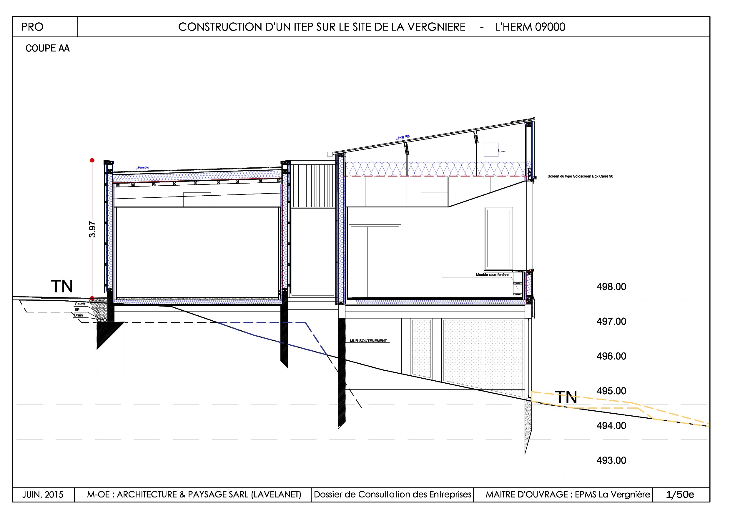 Réalisation d'un institut thérapeutique et pédagogique dans un campus d'enseignement pour enfants en difficultés. Au départ du projet une réflexion a été menée pour le choix du site par la maîtrise d'oeuvre en concertation avec le maître d'ouvrage. Un terrain en balcon avec une orientation favorable a été retenu et a permis de mettre en oeuvre un projet à la fois utilement connecté au reste du bâti du campus et ouvert sur le paysage en bénéficiant d'un très bon ensoleillement. L'édifice est constitué de salles de classe et d'atelier et se distribue le long d'une rue intérieure, véritable espace de vie avec des respirations et des séquences permettant une appropriation par les enfants.
