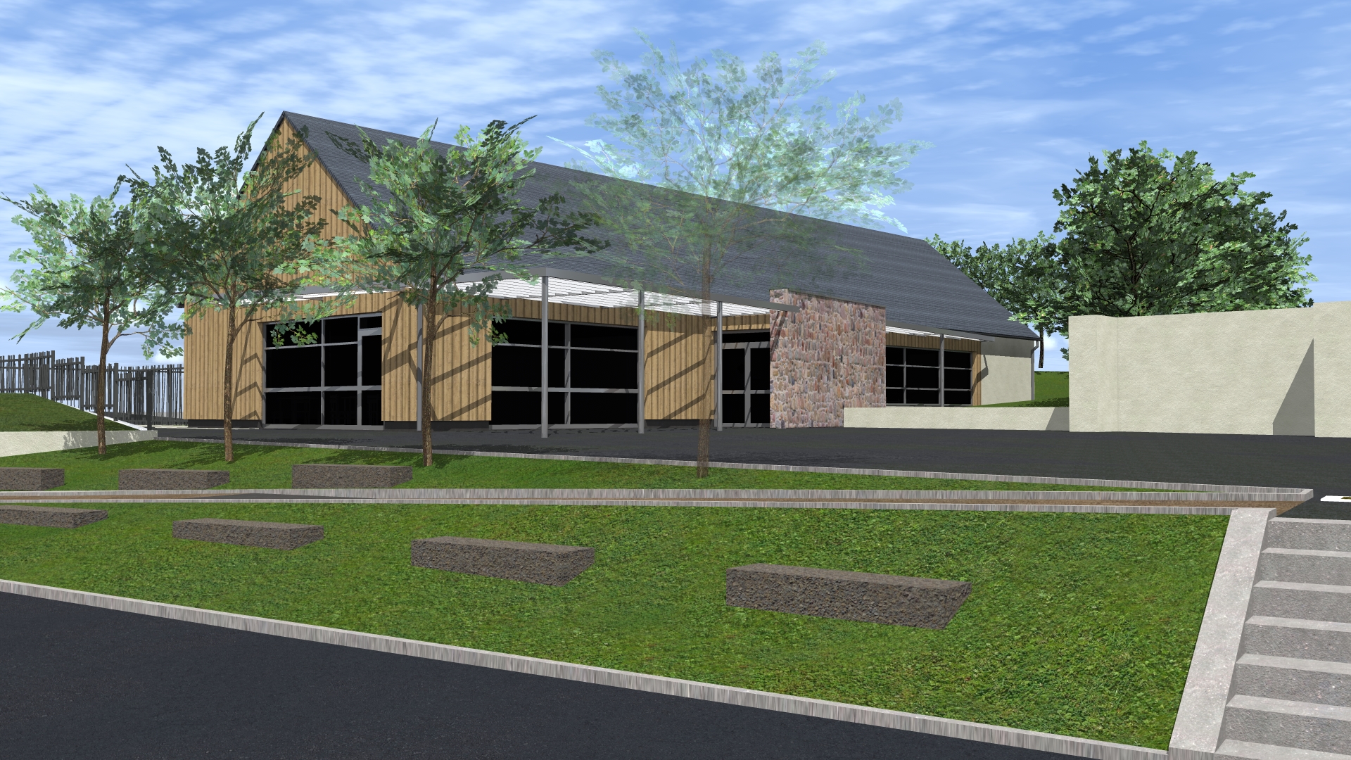 Approche environnementale : Les pièces du bâtiment sont largement éclairées de façon naturelle avec des grandes baies vitrées côté Sud. Les brises soleil sous forme de auvent à lames bois horizontales permettent un dosage de la lumière et évitent les surchauffes en été. Ces baies sont complétées par des stores screen extérieurs, surtout nécessaires en façade Ouest. Le chauffage se fait par une chaudière au gaz naturel et des radiateurs eau chaude. Une ventilation double flux équipe les locaux. L'orientation du bâtiment, l'utilisation d'une forte isolation et de menuiseries très performantes permet à la construction d'aller au-delà de la RT 2012. Le choix a été fait d'utiliser un maximum de bois: ossature, charpente, fibre de bois, bardage, panneaux bois.