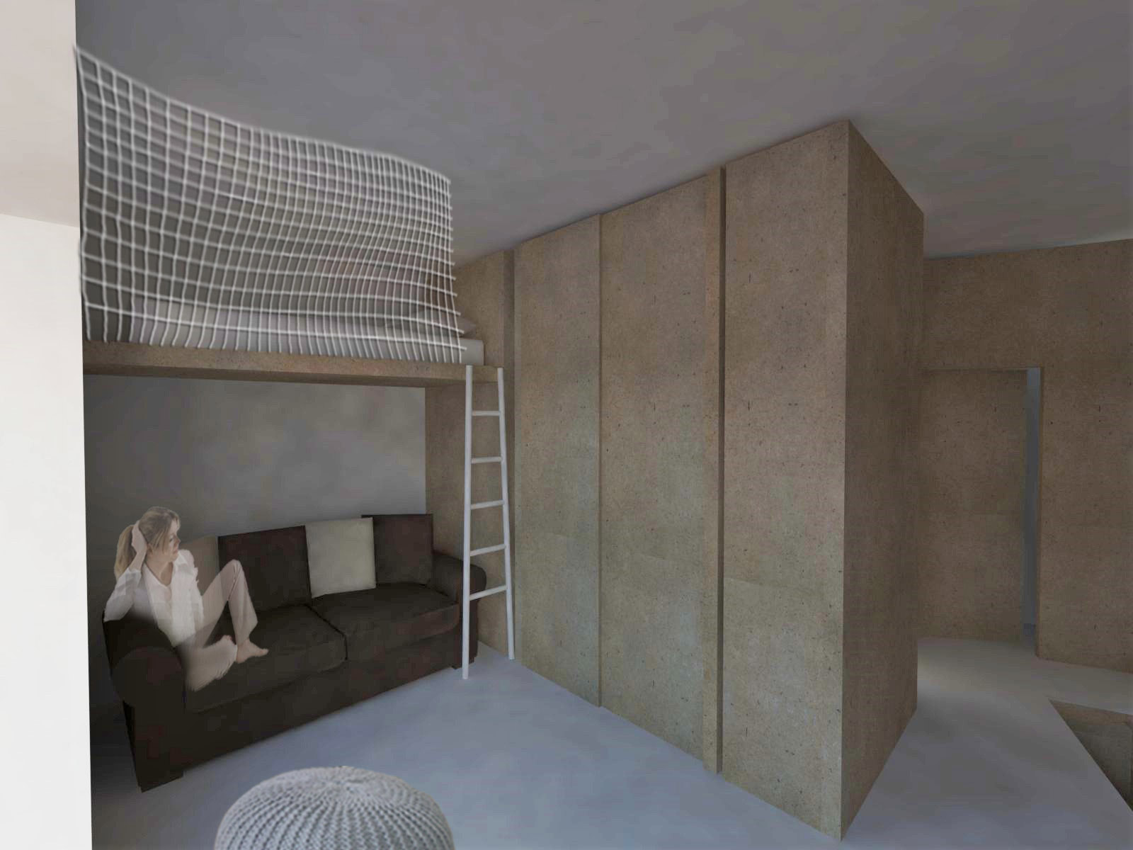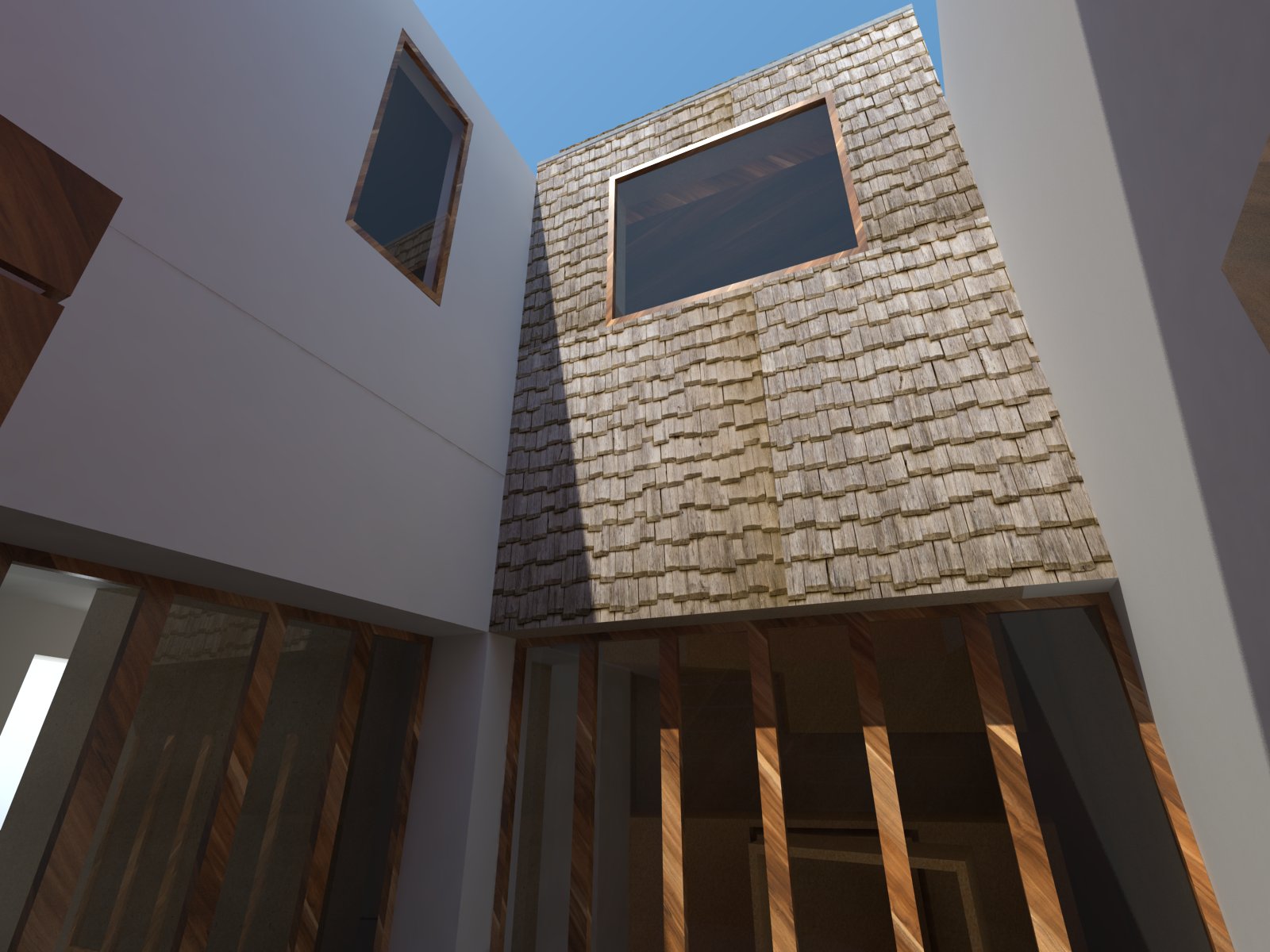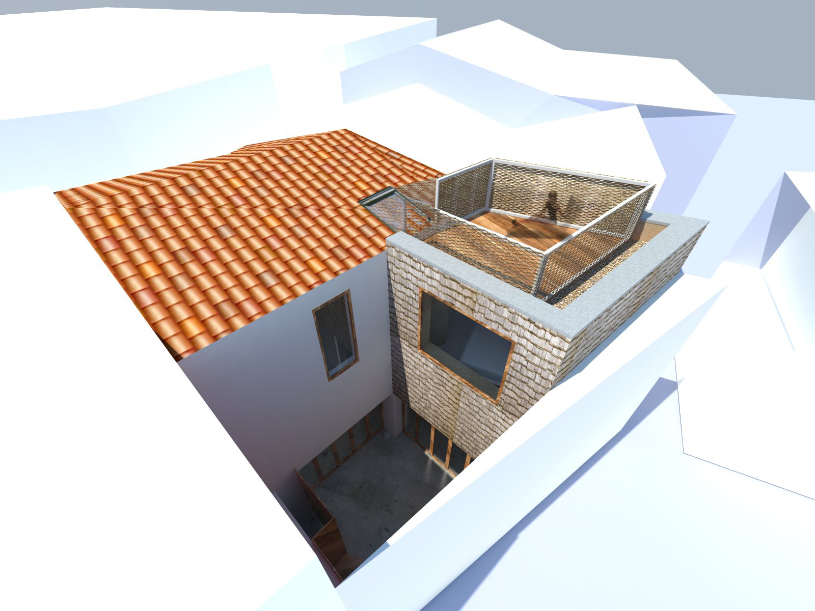 L’enceinte, le bastion, ne permet pas d’entrevoir ce qui s’y cache. Dans une densité écrasante, des lieux insoupçonnables mêlent intimité et liberté retrouvée. L’imagerie du bastion, la cabane de pêcheur sont réunis afin de créer un lieu convivial et chaleureux autour d'une cour. Le patio fait partie intégrante de l’habitation et s’ouvre sur celle-ci grâce à un jeu d’ouverture en accordéon. Les espaces intérieurs et extérieurs se confondent pour ne former plus qu’un quand l’usage l’exige. Une terrasse s’improvise en haut des toits, à l’abri des regards et vient chercher les rayons du soleil.