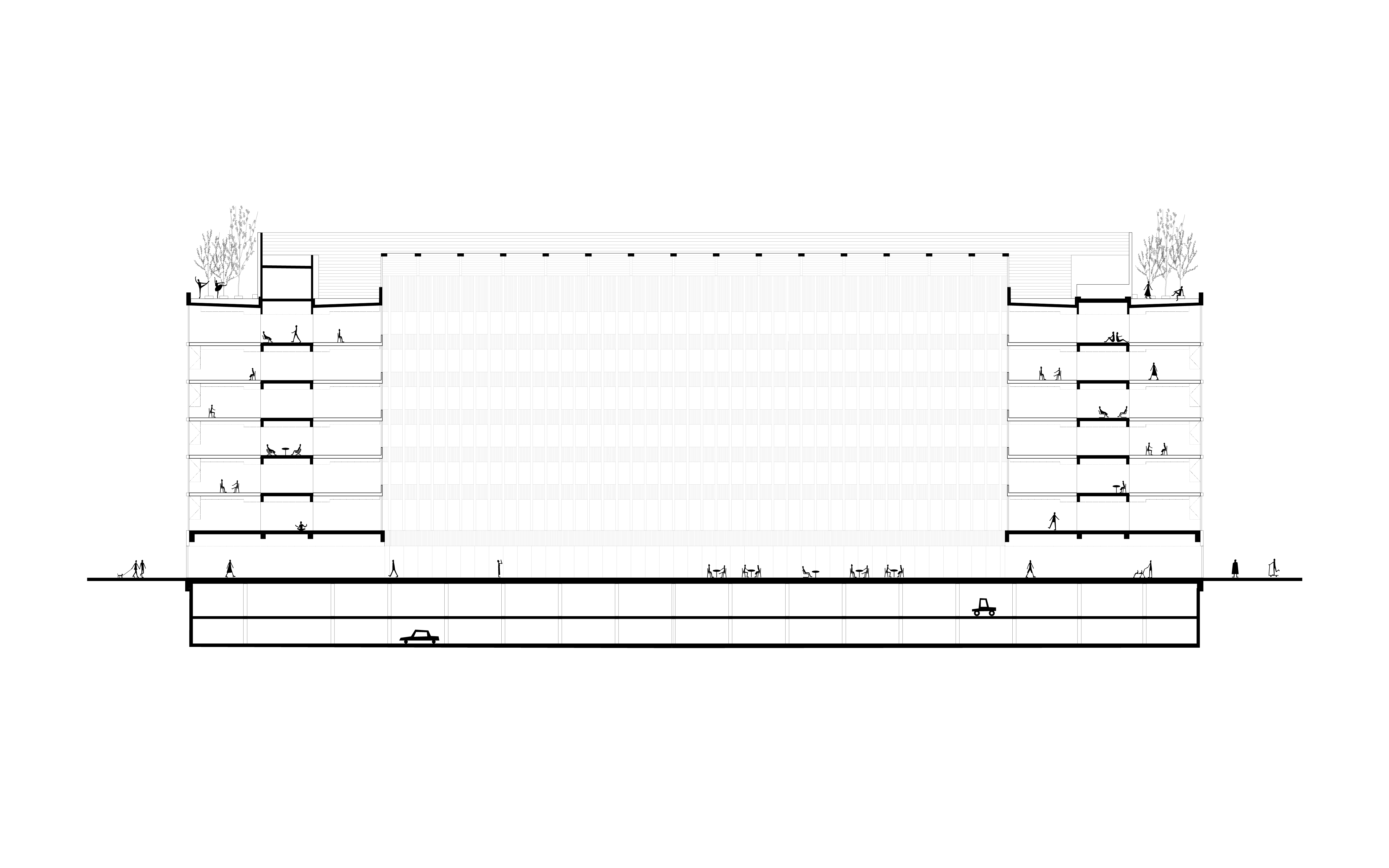 Descriptif technique : La structure poteau/poutre en bois lamellé-collé dont la section courante est 24/32 (Classement GL24h) permet d’assurer la descente de charge de l’immeuble de bureau jusqu‘aux fondations. La stabilité de l’ensemble est assurée par les noyaux en béton. Les dalles de CLT dont l’épaisseur varie de 20 cm pour les planchers à 14 cm pour la toiture, sont posées sur le système poteau/poutre. Ces dalles de CLT permettent d’assurer le rôle de diaphragme de la structure.