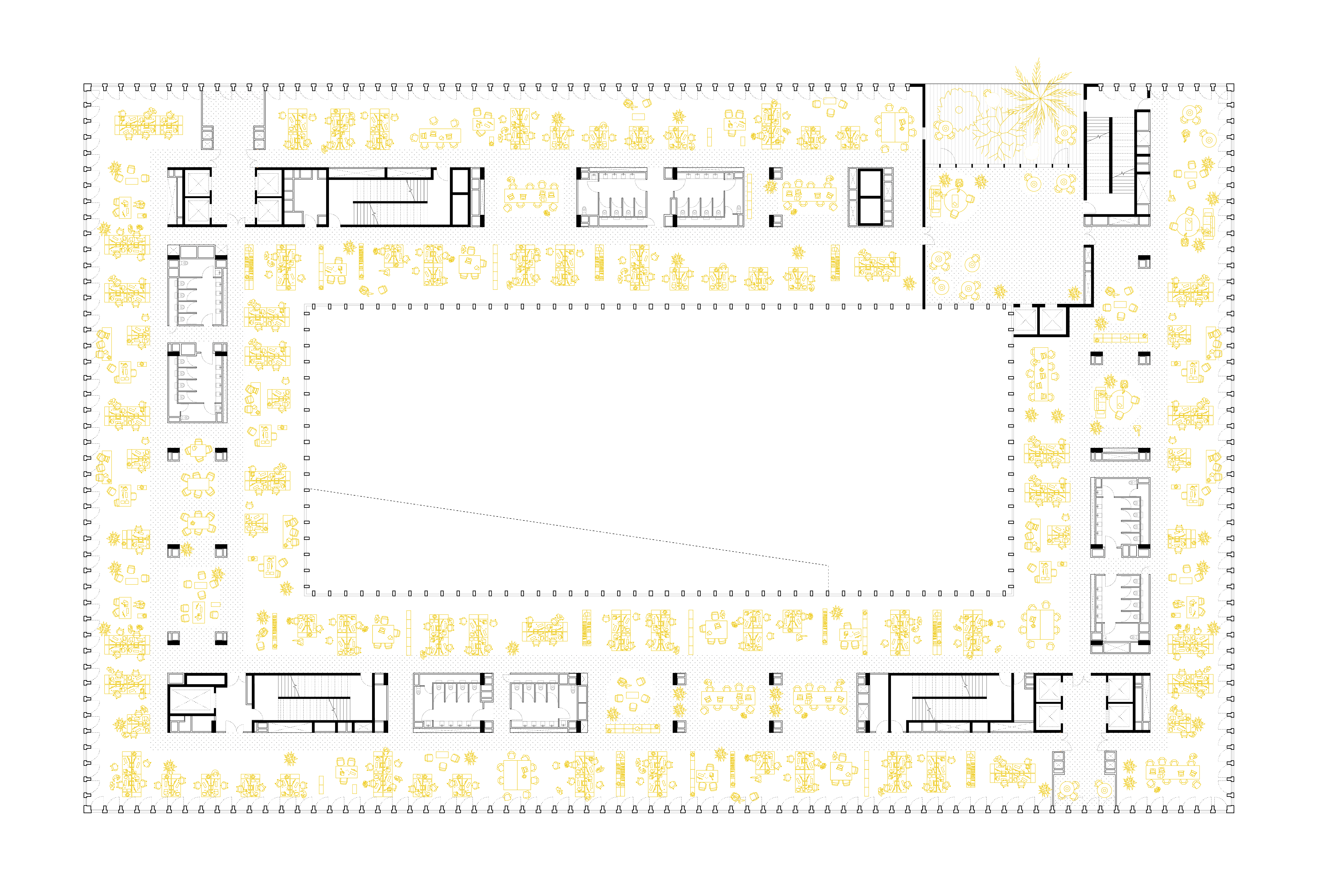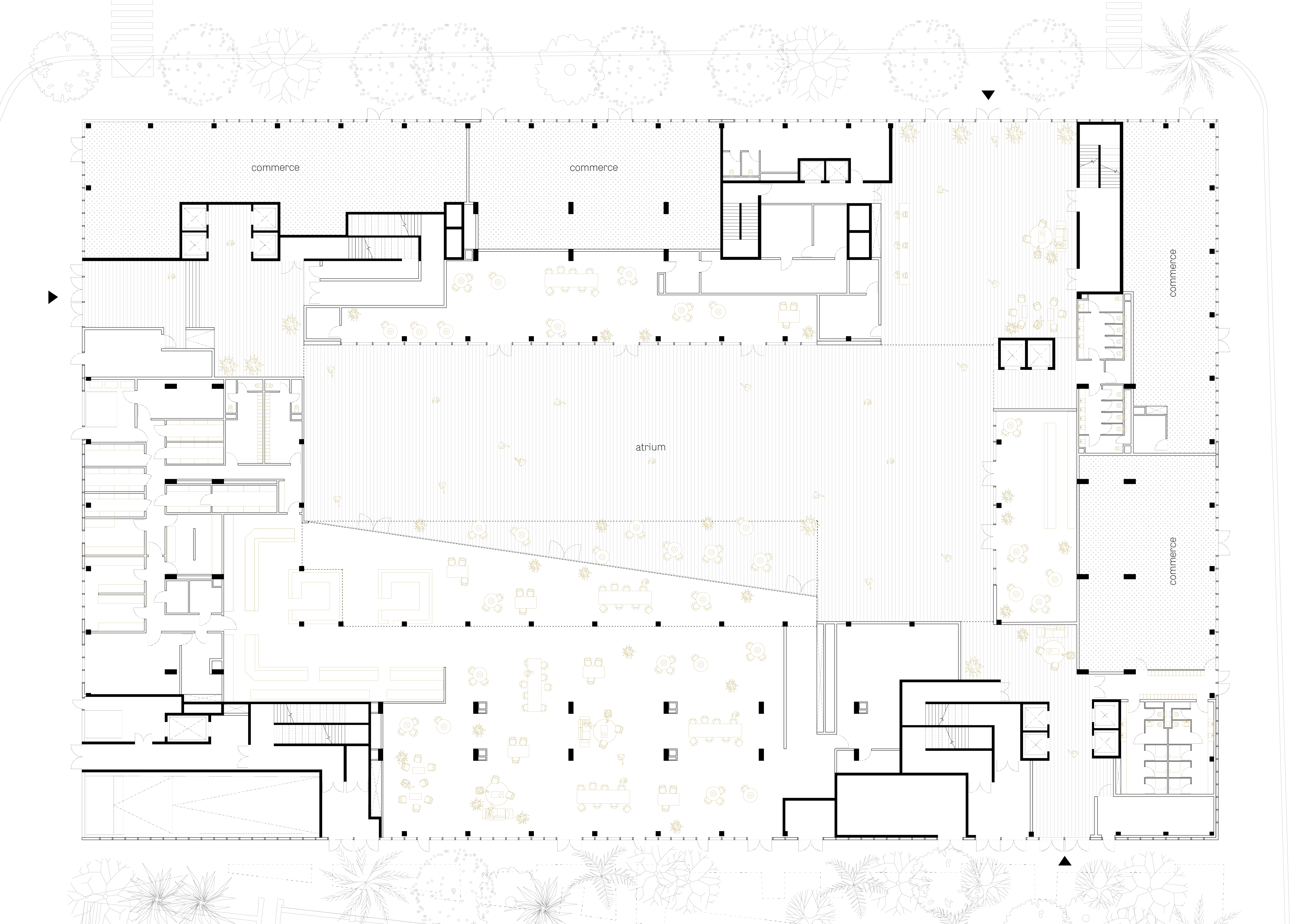 Singulier vis à vis de ses voisins, Pulse affiche une présence urbaine particulière: le bâtiment s’affirme comme un monolithe franc à la composition architecturale sobre, constitué d’un soubassement vitré et d’un attique en retrait. La géométrie et la répétition systématique des larges baies forment une mosaïque qui s’interrompt au-dessus du hall d’entrée et révèle de grands espaces végétalisés. En bois et de verre, Pulse se déploie autour d’un majestueux atrium de 30 mètres de haut, pièce maîtresse du projet, une sorte de cathédrale de verre et bois.