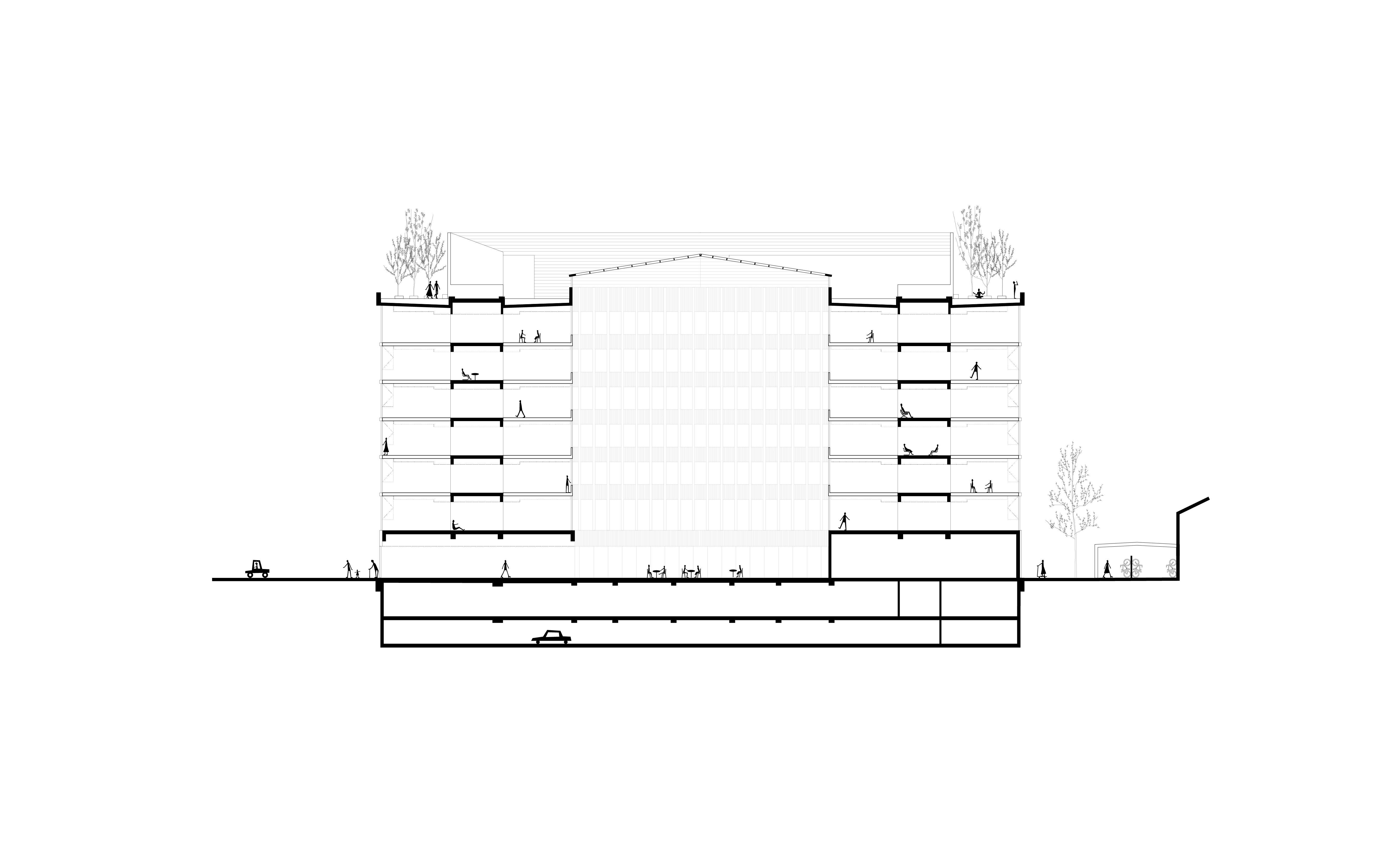 Approche environnementale : Pulse est réalisé en construction mixte: noyaux en béton, poteaux et poutres/planchers en bois. Le choix d’une structure bois a permis de limiter l’impact carbone. Le béton, utilisé pour la réalisation du socle jusqu’au R+1 et des noyaux, a été objet d’une étude pour optimiser sa composition. La verrière de l’atrium est formée d’une charpente en bois lamellé avec des chevrons et des pannes longitudinales. Les matériaux ont été choisi en fonction des leurs vertus: pérennité, stabilité, résistance