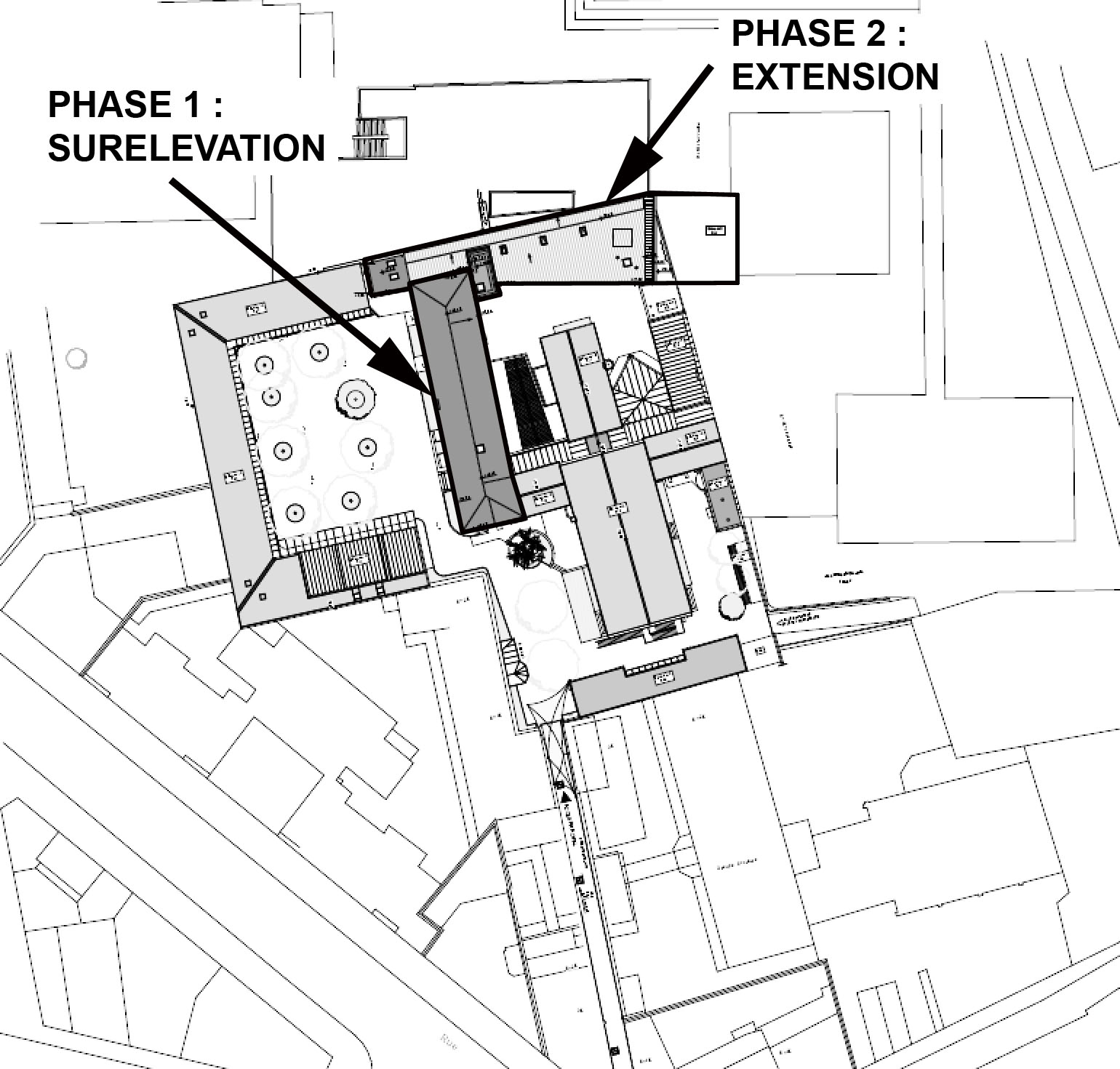 Le groupe scolaire Saint-Vincent-de-Paul est implanté sur une parcelle de 4 768 m² en cœur d'îlot. En réponse aux besoins croissants, une transformation s’est imposée. La surélévation d’un bâtiment ancien et la création d’un bâtiment neuf en limite de propriété ont apporté, en 2 phases, la solution à l’exiguïté du site. Surélévation : 4 classes, 1 bureau Création bâtiment neuf : création auditorium de 204 places, CDI, 5 classes, ascenseur + rénovation réfectoire et gymnase. Cette construction permet une liaison à chaque étage avec les bâtiments plus anciens, eux même en partie rénovés.