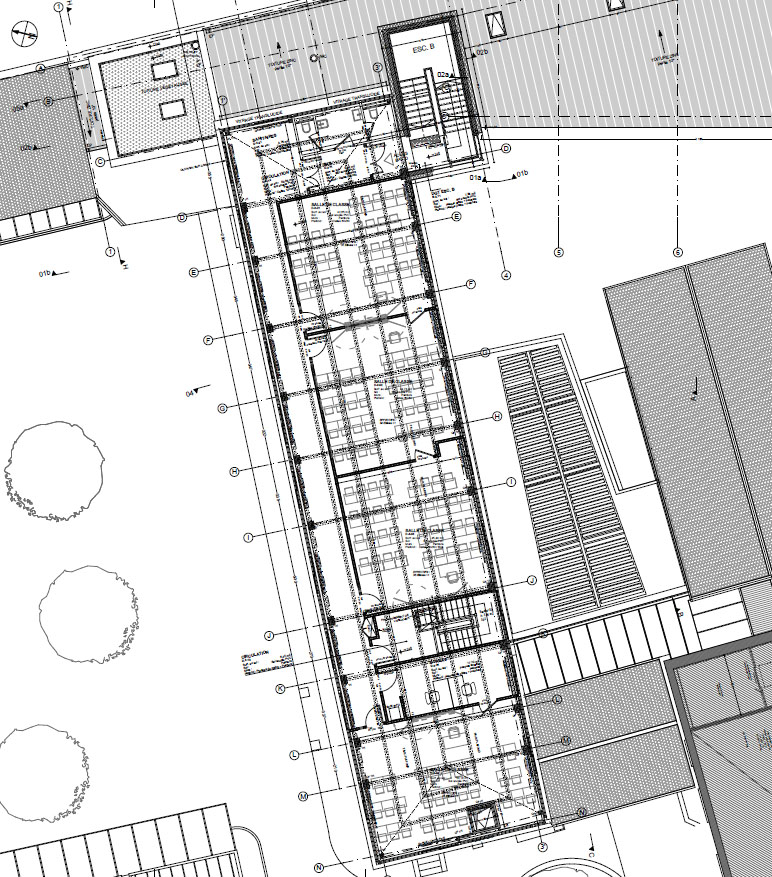 Bâtiment neuf - Création d'un Auditorium de 204 places : - Faux-plafond acoustique en panneaux de bois Oberflex Tectonique - Faux-plafond acoustique en toile tendue - Tribune fixe et escamotable : sièges bois, moquette au sol - Sol caoutchouc coulé - Garde-corps en verre pincé Bâtiment existant - Rénovation complète du réfectoire de 108 places : - Habillage mural acoustiques bois Laudescher, gamme Lauder Linea - Cloisonnettes acoustiques en panneaux sandwich médium perforé teinté dans la masse + laine minérale - Poteaux séparatifs en épicéa verni - Mange-debout et meubles en chêne et stratifié