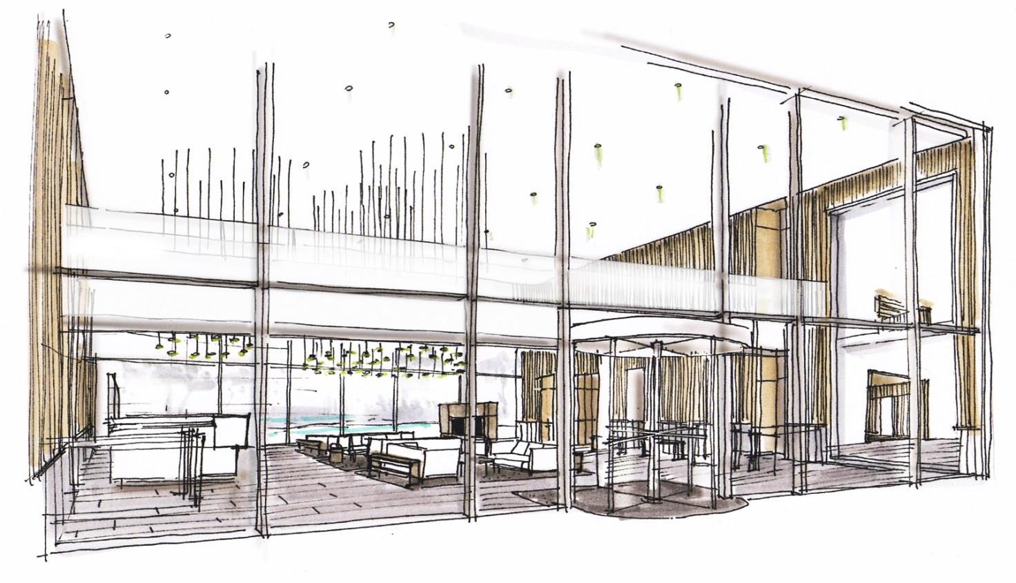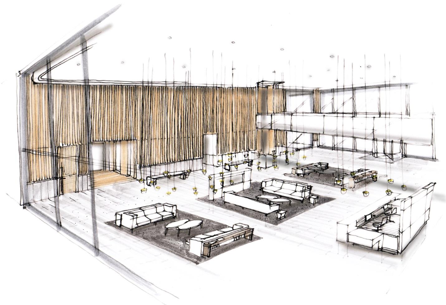 Le travail des architectes était de créer une architecture minérale. Leur souhait initial étant de l'exprimer aussi à l'intérieur pour garantir une forme de cohérence globale. A l'inverse de ce précepte, mon travail a été de redonner un caractère plus chaleureux apporté par le bois. Pour le hall d'accueil, qui est traversant et en double hauteur traversée par une passerelle en métal et verre, le choix du bois s'est imposé de façons très naturel venant réchauffer un espace très ouvert. Le rythme des bois verticaux lui confère une image très identitaire et renvoie l'image au visiteur d'un endroit très organisé, confortable et rassurant.