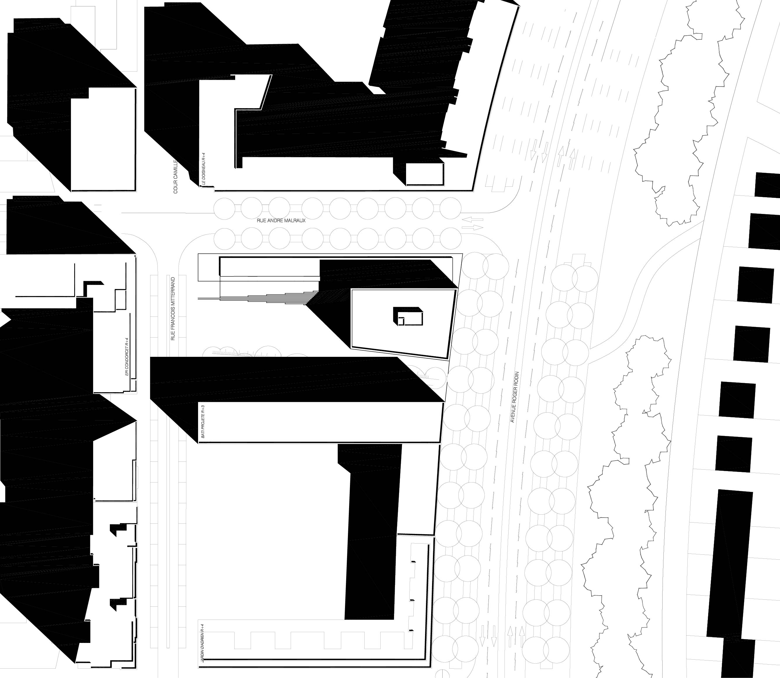 Le projet du nouveau bâtiment de la Mairie de Saint-Jacques-de-la-Lande est l’occasion rêvée pour tout architecte de pouvoir allier une stratégie urbaine à un geste architectural. Cette opportunité a permis d’imaginer un lieu qui puisse être à la fois un lieu de travail, un lieu de service à la population, un lieu de représentation symbolique, ainsi qu’un espace public générateur de nouveaux usages collectifs. Ce lieu est une réponse à la question : « Comment fabriquer un symbole avec peu de mètres carrés, peu de moyens et un terrain trop grand ? » ou formulé autrement : « Est-il possible de résoudre les problématiques d’échelle spécifiques à ce lot, et transformer ses contraintes en atouts ? ». Ce projet est conçu à travers une prise de position claire. Le nouveau bâtiment de la Mairie se doit d’être un lieu générateur de vie : - une place, plus qu’un bâtiment, - un point de rencontre plus qu’un lieu où l’on se rend uniquement pour l’intendance, - une image unitaire et claire qui développe une identité, sans tomber dans le cliché de la représentation emblématique d’un pouvoir, - un lieu de travail soucieux du confort et de la qualité de l’espace plus par son intelligence que par la brillance de ses matériaux, et les techniques mises en œuvre. L’élément fédérateur est la contemporanéité et être contemporain signifie en premier lieu minimiser les impacts, développer un potentiel, et prévoir la dérive. Le principe de fonctionnement repose sur une lisibilité aisée des différents services, un repérage évident des accueils autour de patios naturellement éclairés et une organisation spatiale ordonnée autour du hall central. L’approche architecturale, environnementale et économique des contraintes programmatiques et urbaines, associée à la volonté de réaliser un bâtiment proposant de larges plateaux de superstructure en réduisant a minima les porteurs intermédiaires lui confère ainsi la flexibilité indispensable à son fonctionnement et à ses évolutions futures.