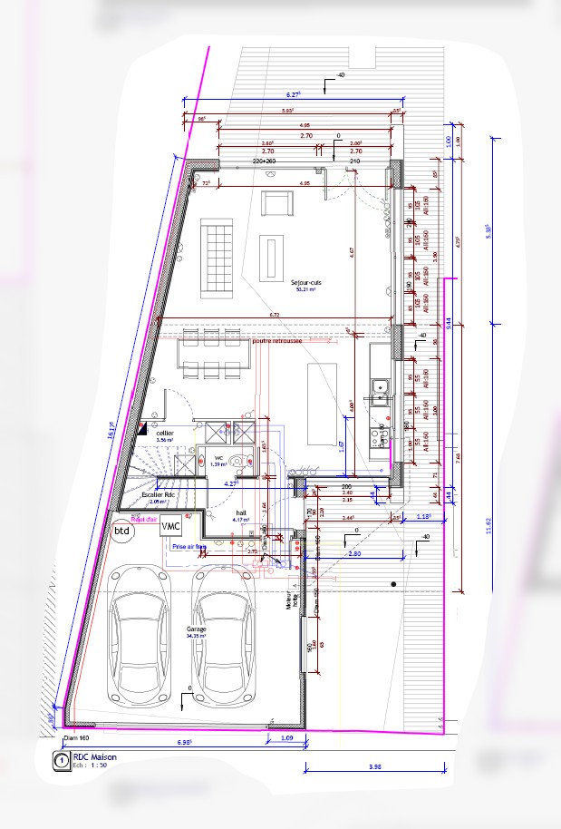 Issue d'une division parcellaire, construite dans un jardin et en place de l'ancien garage, le projet s'interpose entre un espace végétal arriére, et une route de ville passante. Montant d'un niveau en 2 rang. Les espaces de vie s’étendant sur l’arrière coté sud, donnant sur le jardin et le pin, là avant la construction, et offre un large espace de vie familiale sur le Rdc et 3 chambres et salle de bains sur R+1.