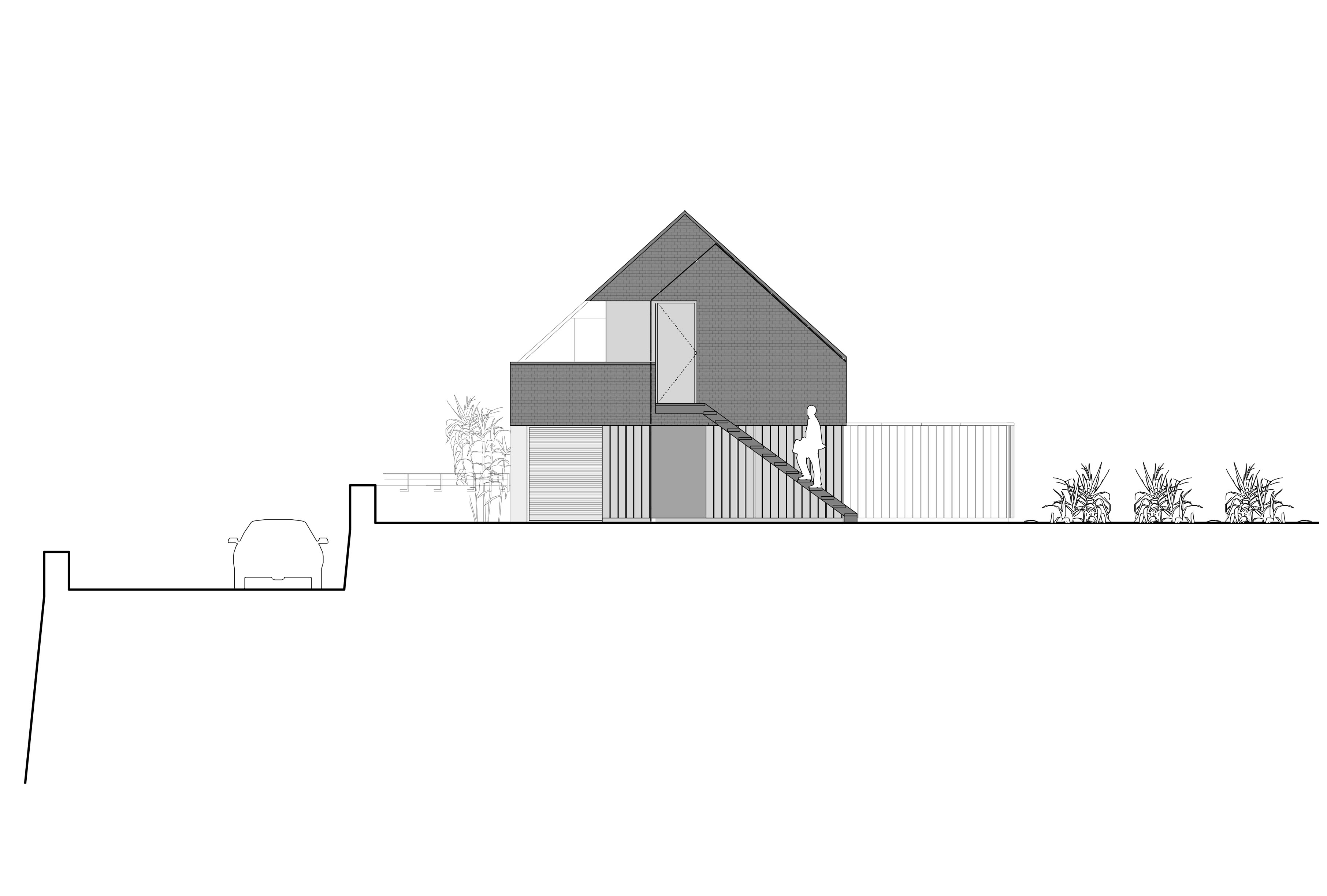 Située sur le port de Loguivy de la Mer à Ploubazlanec, cette extension s’installe à la suite d’un ensemble de maisons existantes mitoyennes dont les façades sont en pierre et les toitures en ardoise. Pour réussir à ne pas s’imposer dans son environnement, l’extension utilise l’ardoise mordorée en toiture et en façade. Ce pliage aux reflets cuivrés, produit une extension résolument régionaliste. Un bardage bois vertical en châtaignier habille le pignon et se prolonge en clôture. Une toiture, en retrait, refermée de verre, accueil l’escalier d’accès à l’étage.