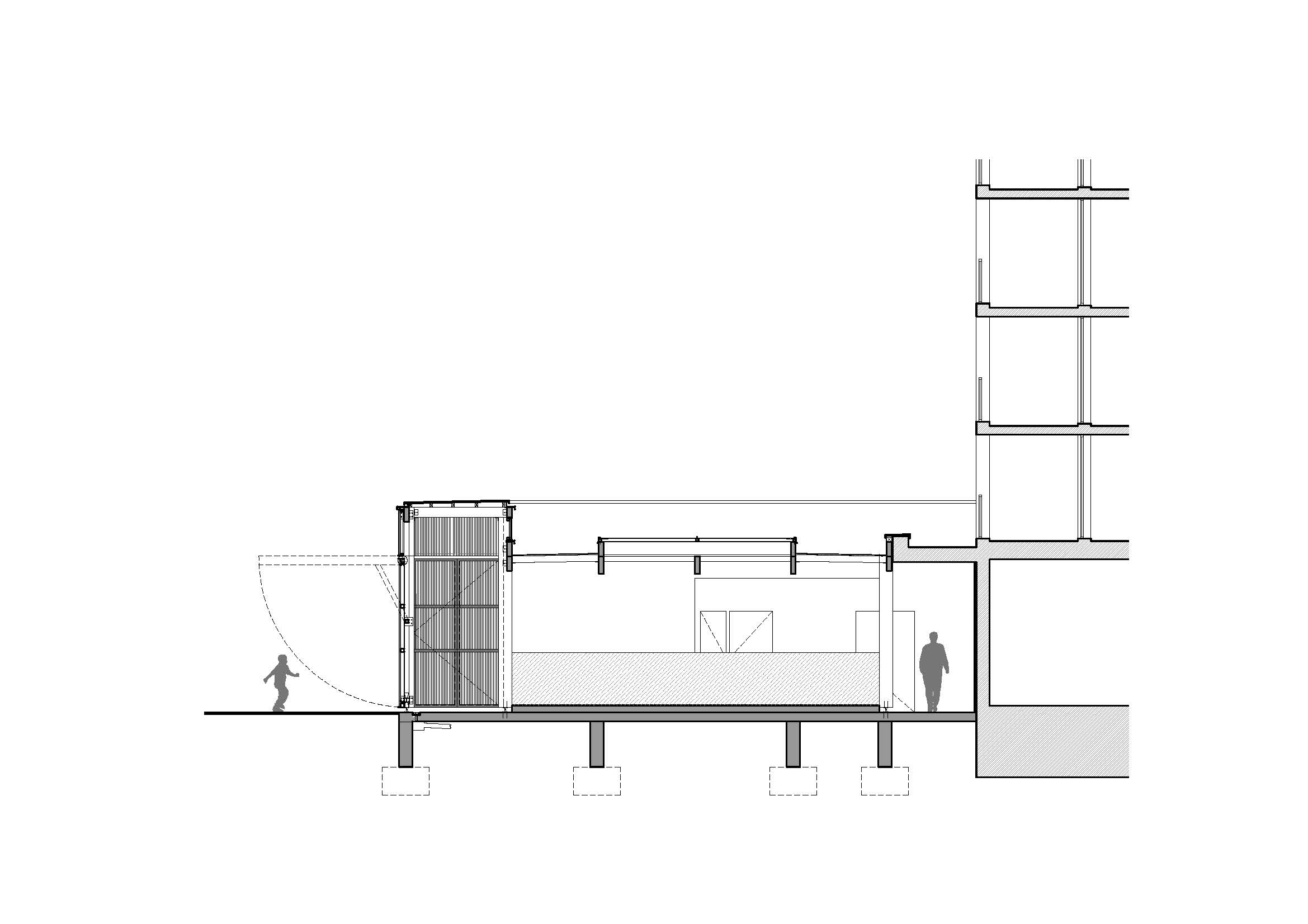 C’est en travail étroit avec l’équipe de paysagistes en charge de l’aménagement de l’espace public contigu, que nous avons conçu une halle sobre en ossature bois pour la commune de Bouffémont (95). Située en cœur de ville, le nouvel équipement remplace l’ancienne halle, désuète, sur la place Vauban fraîchement réhabilitée. Adossée à une opération de logements sociaux, elle se veut conviviale et accueillante. La trame est rationnelle et le projet est modulable. Ouverte, elle déploie ses portes papillons en bois devenant préau pour abriter des échoppes provisoires. Fermée, elle se fait oublier.