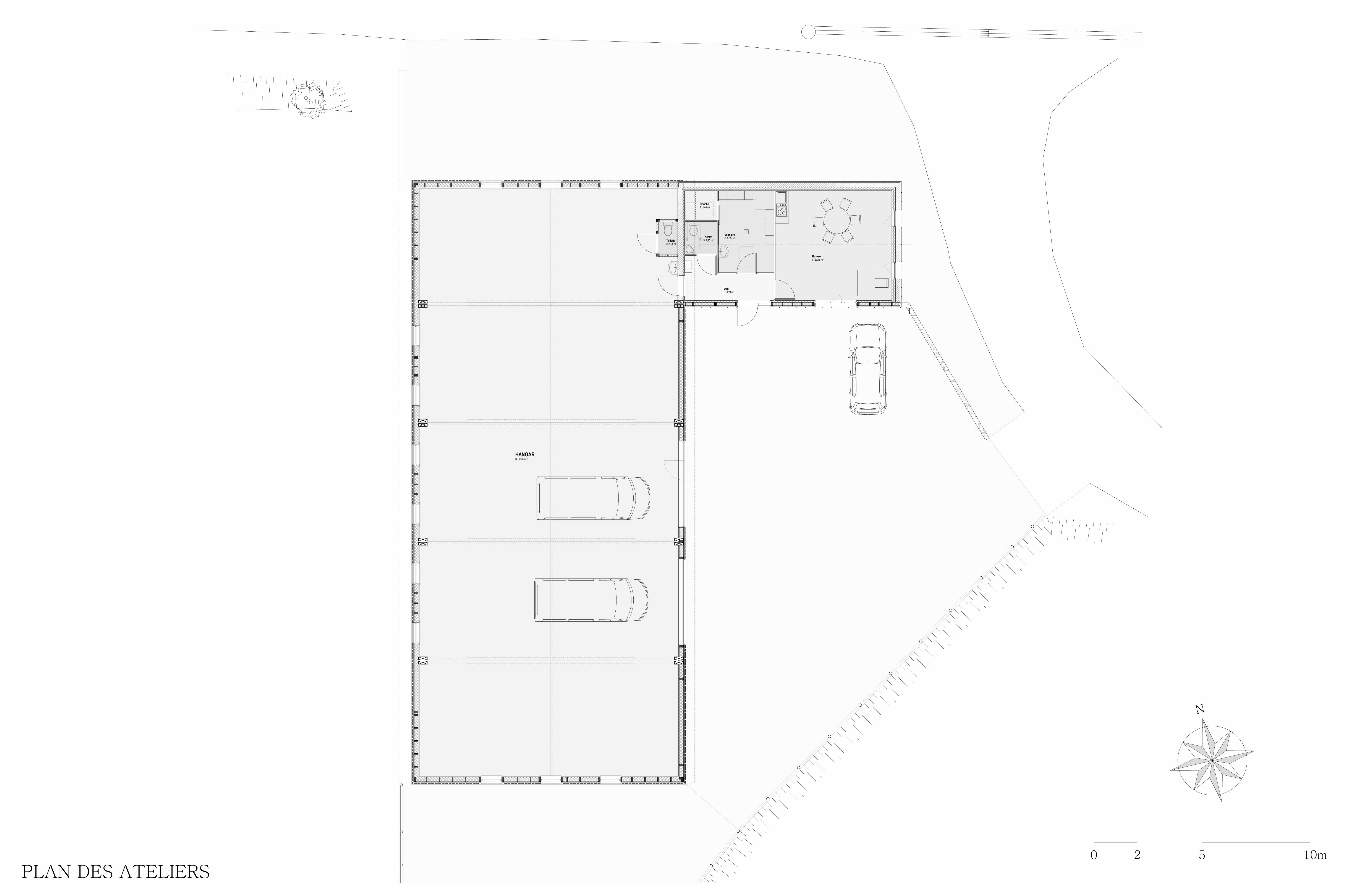 L'atelier est construit à l’entrée du bourg de Saint-Etienne-de-Lugdarès situé dans l’étroite vallée du Mas Méjean. Le projet répond à trois attentes particulières ambitionnées avec la maîtrise d’ouvrage : La première étant la création d’une surface couverte de plus 360 m² sur une parcelle étroite triangulaire ; la seconde est l’intégration d’un bâtiment industriel entre zones pavillonnaire diffuse et entrée de bourg ; et enfin la construction d’un bâtiment peu énergivore.