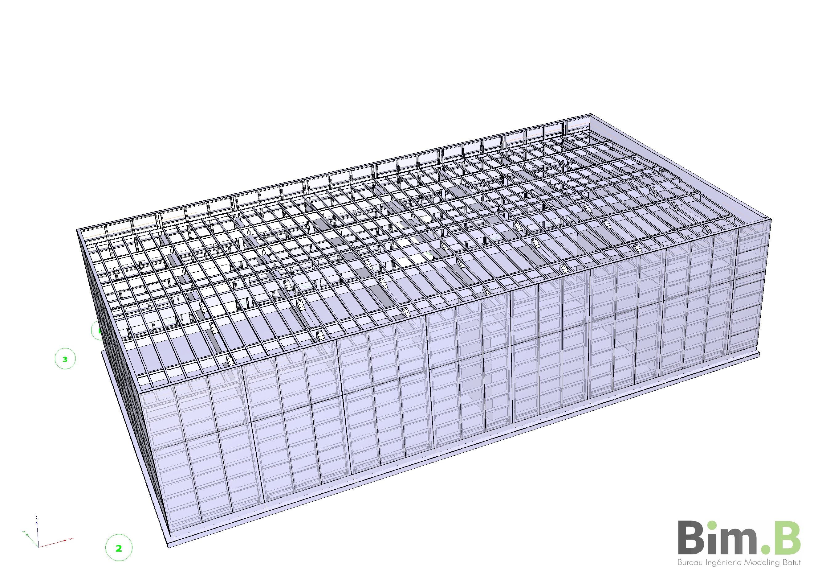 Chantier réalisé dans l'hyper centre de Montpellier avec une contrainte de temps et de gestion de l'espace : calage de la grue de 50 tonnes dans le centre militaire voisin, préfabrication de l'ensemble de la structure en atelier, approvisionnement de nuit (arrêt du tramway entre 1 et 4 heures). Structure réalisée en lamellé collé poteaux / arbalétriers stable au feu, remplissage en murs à ossature bois isolés avec 145 mm de laine de roche. Support de toiture en panne lamellé collé, chevrons épicéa PEFC et dalles OSB couturées en périphérie. Habillage intérieur placoplâtre coupe-feu.