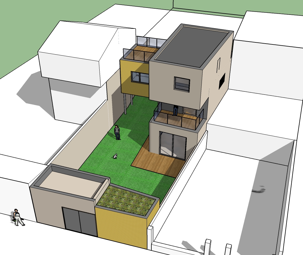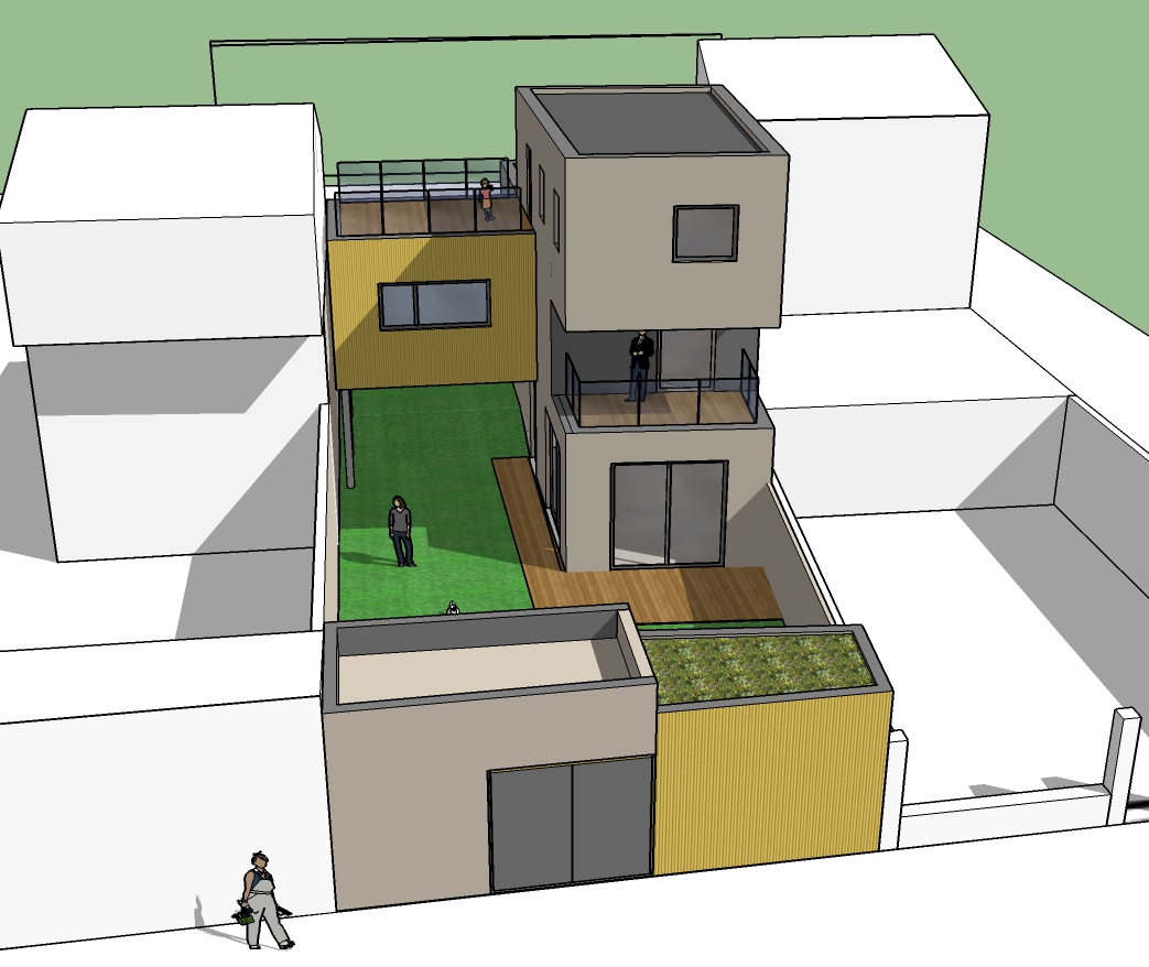 Descriptif technique : Mise en oeuvre suivant les prescriptions du Label Passivhaus Étanchéité à l'air très haute performance Châssis bois alu triple vitrage