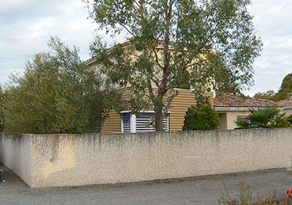 Descriptif technique : Murs à ossature bois sur dalle béton, étanchéité auto protégée sur plancher bois, isolation en fibre de bois et laine de verre, bardage bois en Douglas naturel (purgé d'aubier), menuiseries et habillages d'ouvertures en aluminium laqué, stores BSO en aluminium laqué.