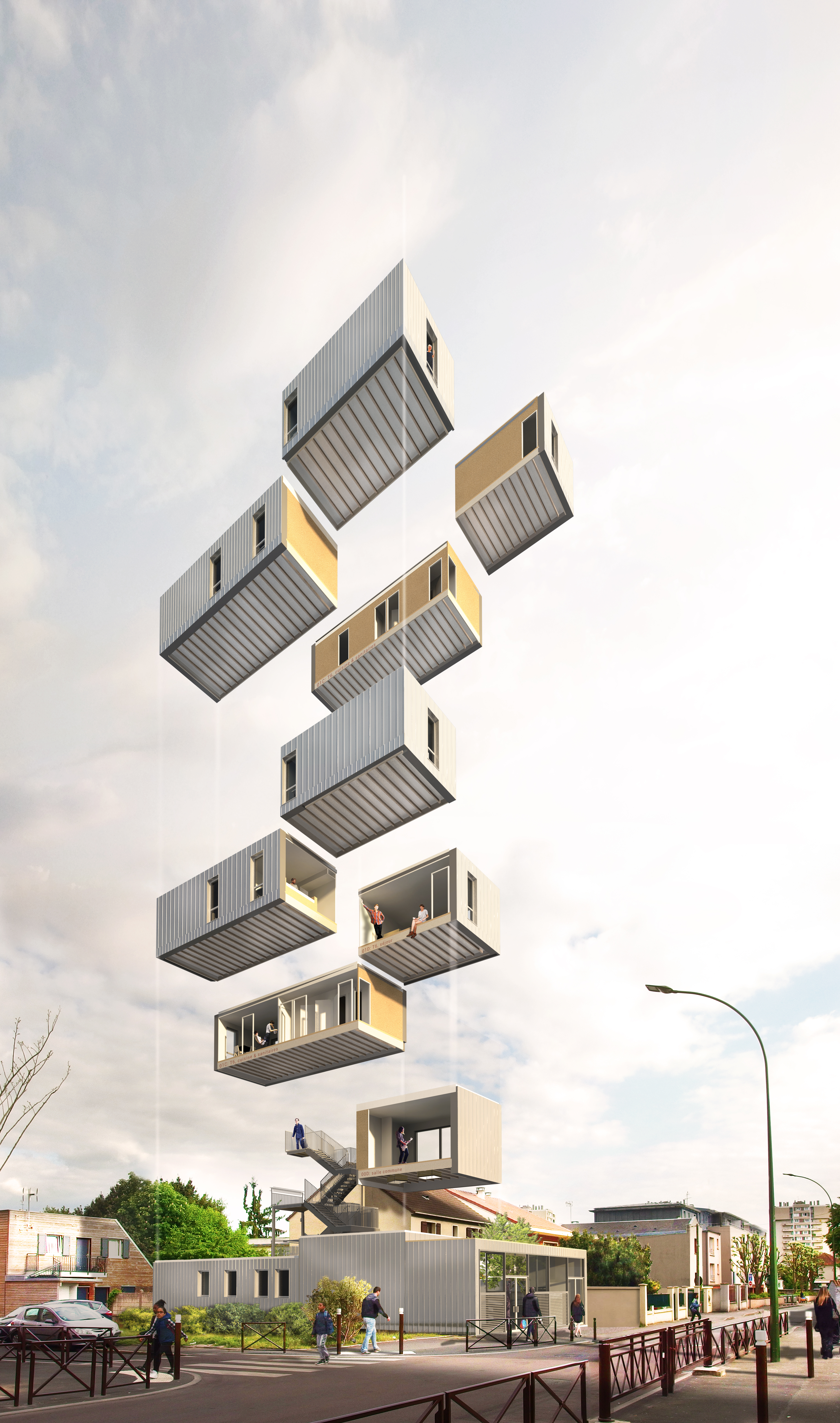 Le logement étudiant fait partie des programmes les plus standardisés. Il se résume encore souvent à des cages à poules empilées ad nauseam dans un processus industriel auquel on associe souvent l’image de la construction modulaire préfabriquée. Le friendly building prend le contre-pied de ces a priori. Il démontre la souplesse de ce programme, il démontre la flexibilité de la construction modulaire tridimensionnelle. Il met en avant une architecture sensible au service des usagers et de la ville.