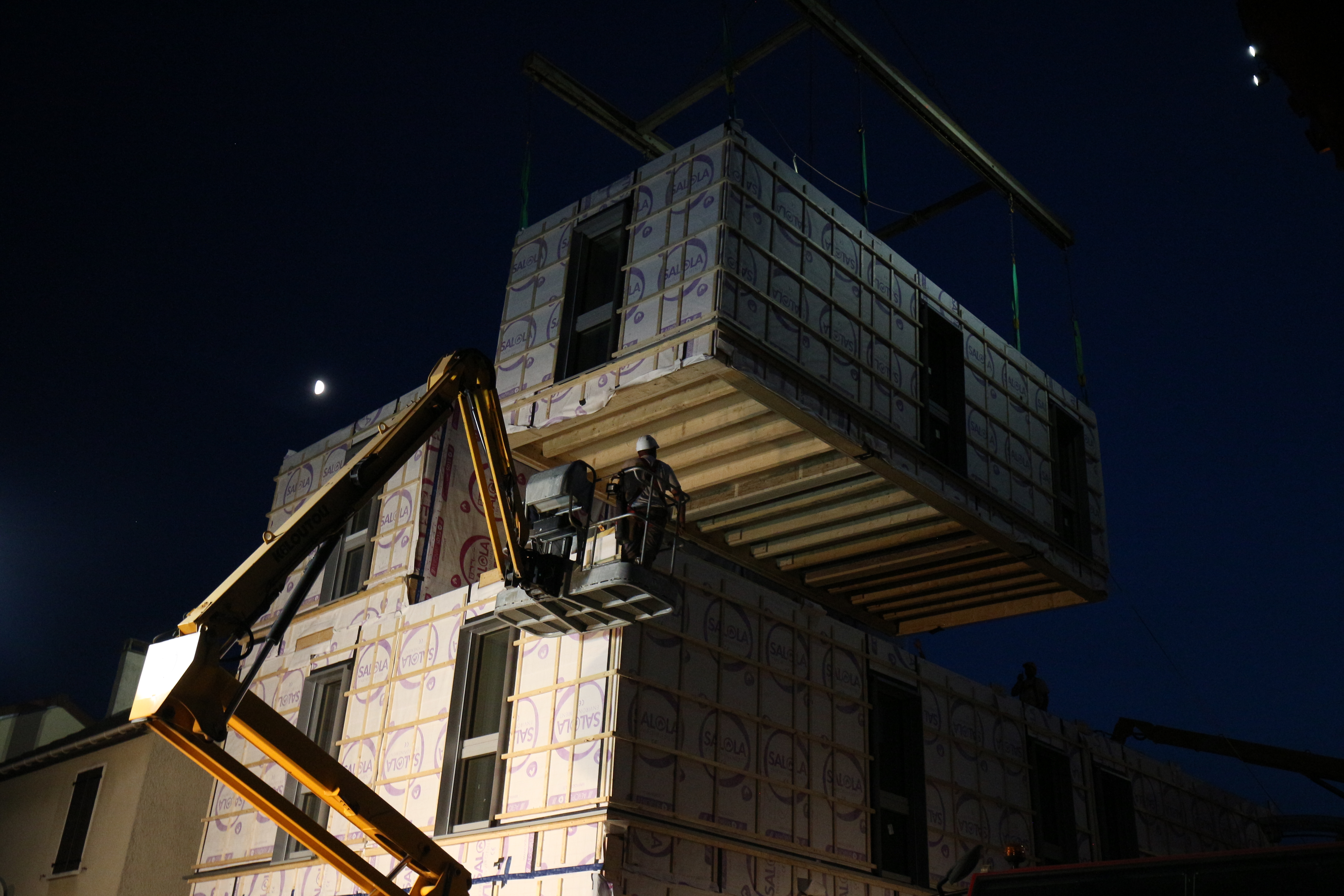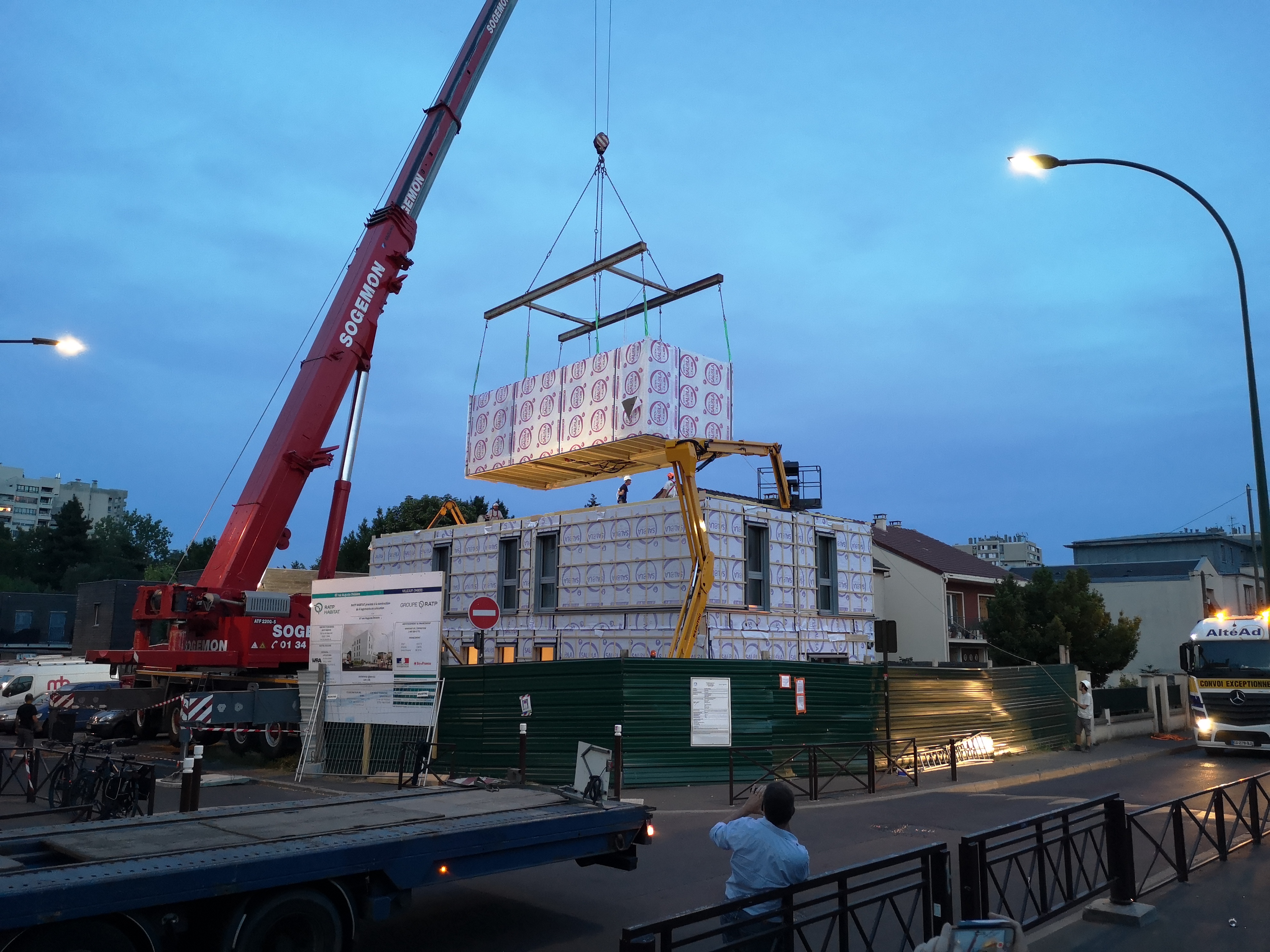 Approche environnementale : La démarche bas carbone très poussée inhérente au procédé constructif CMB allie à la structure bois une isolation bois et ouate de cellulose, pour un bilan carbone formidable et une approche matériaux biosourcés responsable. Le transport des modules pèse 1200l de fioul (10 camions x 30l au cent x 400km). C’est un ordre de grandeur comparable à la consommation d’un pavillon sur un an mais le bâtiment ne consommera par la suite, quasiment pas pour le chauffage.
