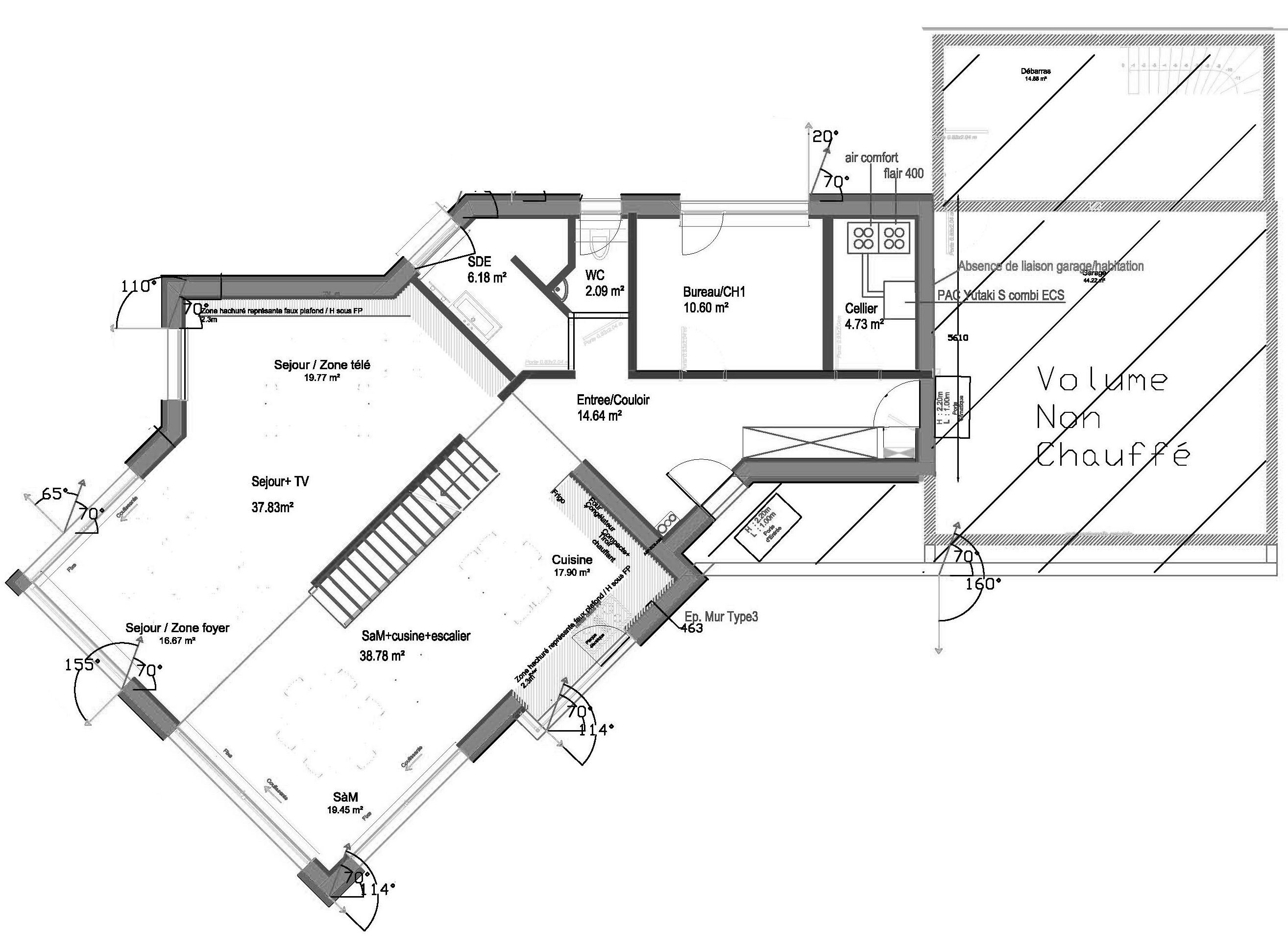 Descriptif technique : Mur maison : ossature bois Maison certifiée Passivhaus Institut Chauffage/rafraichissement/ventilation : système qui associe un échangeur hydraulique avec la VMC double flux (rendement de 89 %) et une pompe à chaleur air/eau de 4,3 kW. l’installation est composée de deux appareils distincts pour produire à la fois l’eau chaude sanitaire, l’appoint de chauffage sur l’air (2,8 kW) ou le refroidissement sur l’air (1,8 kW). PEFC (Gestion forestière durable) CTB P (Produits de traitement) Marquage CE