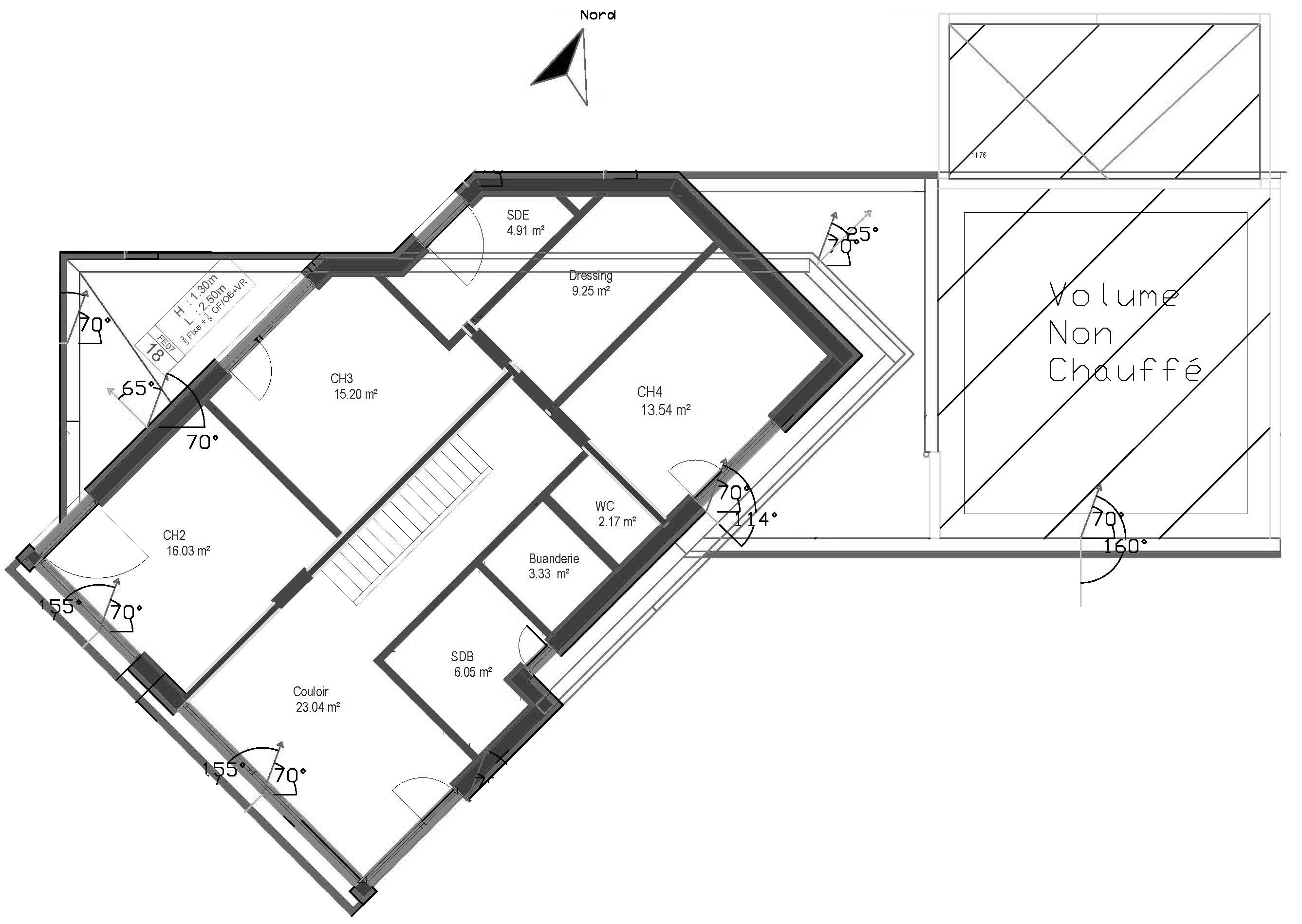 Cette maison au design résolument contemporain, présente des portes à faux et de nombreux décrochés. Après avoir obtenu le permis de construire, le maître d’ouvrage a découvert le standard passif et a cherché un maître d’œuvre capable de construire sa maison en la certifiant Passivhaus Institut. Rendre passive une maison à l'architecture complexe, non compacte, insérée dans un lotissement avec de nombreux ombrages ne fut pas simple. L'objectif fut malgré tout atteint au prix de quelques surcoûts, de savants calculs et une mise en oeuvre irréprochable.