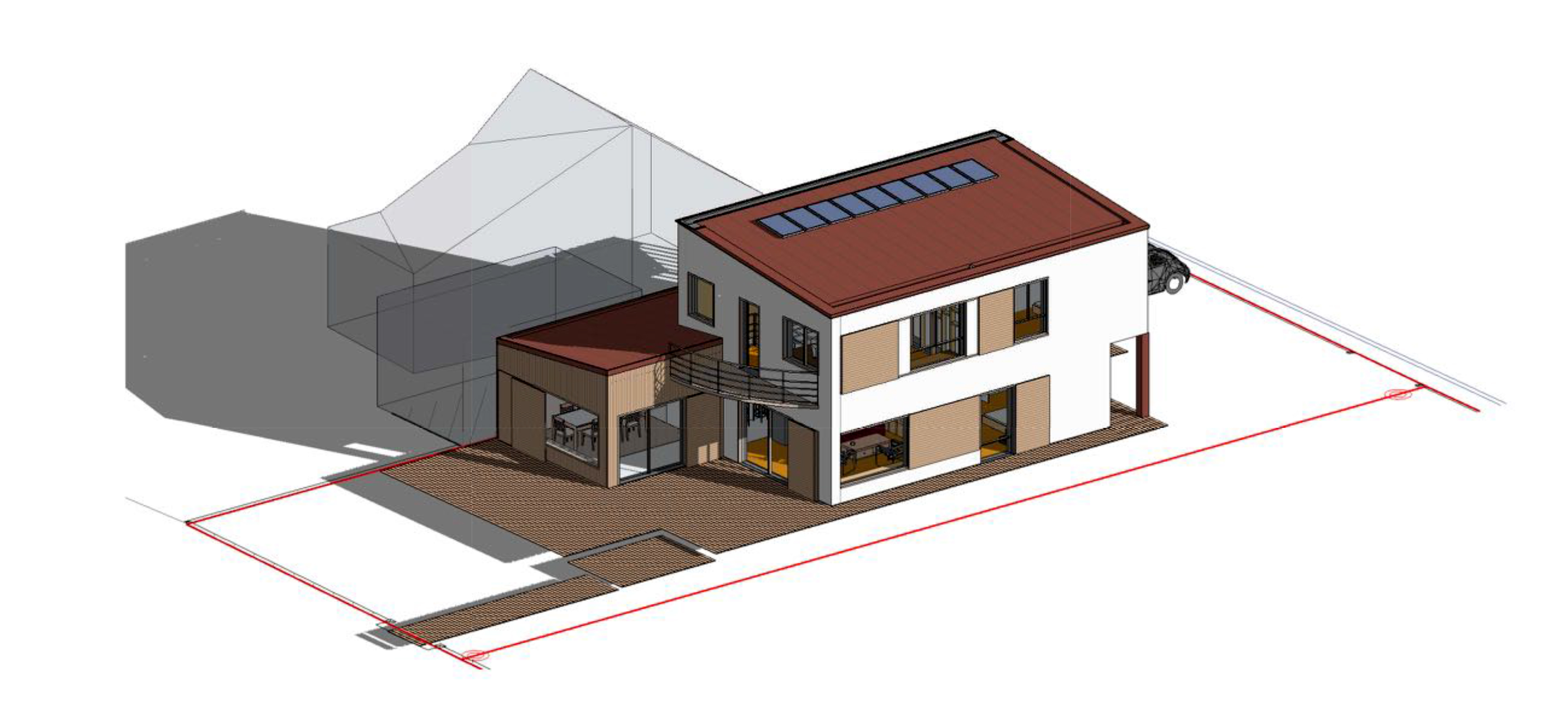 Approche environnementale : Le projet visant des performances environnementales fortes, l’enveloppe est réalisée en béton de chanvre projeté sur une ossature bois porteuse. Ce système constructif présente l’avantage de créer des murs perspirants, perméables à la vapeur et offrant une bonne régulation hygrothermique. Cela permet de travailler avec des matériaux locaux (le chanvre, le bois) et traditionnel (la chaux) et d’améliorer le bilan carbone. Pour ce même objectif, une cuve de récupération d'eaux pluviales et des panneaux solaires photovoltaïques permettent de réduire l'empreinte environnementale.