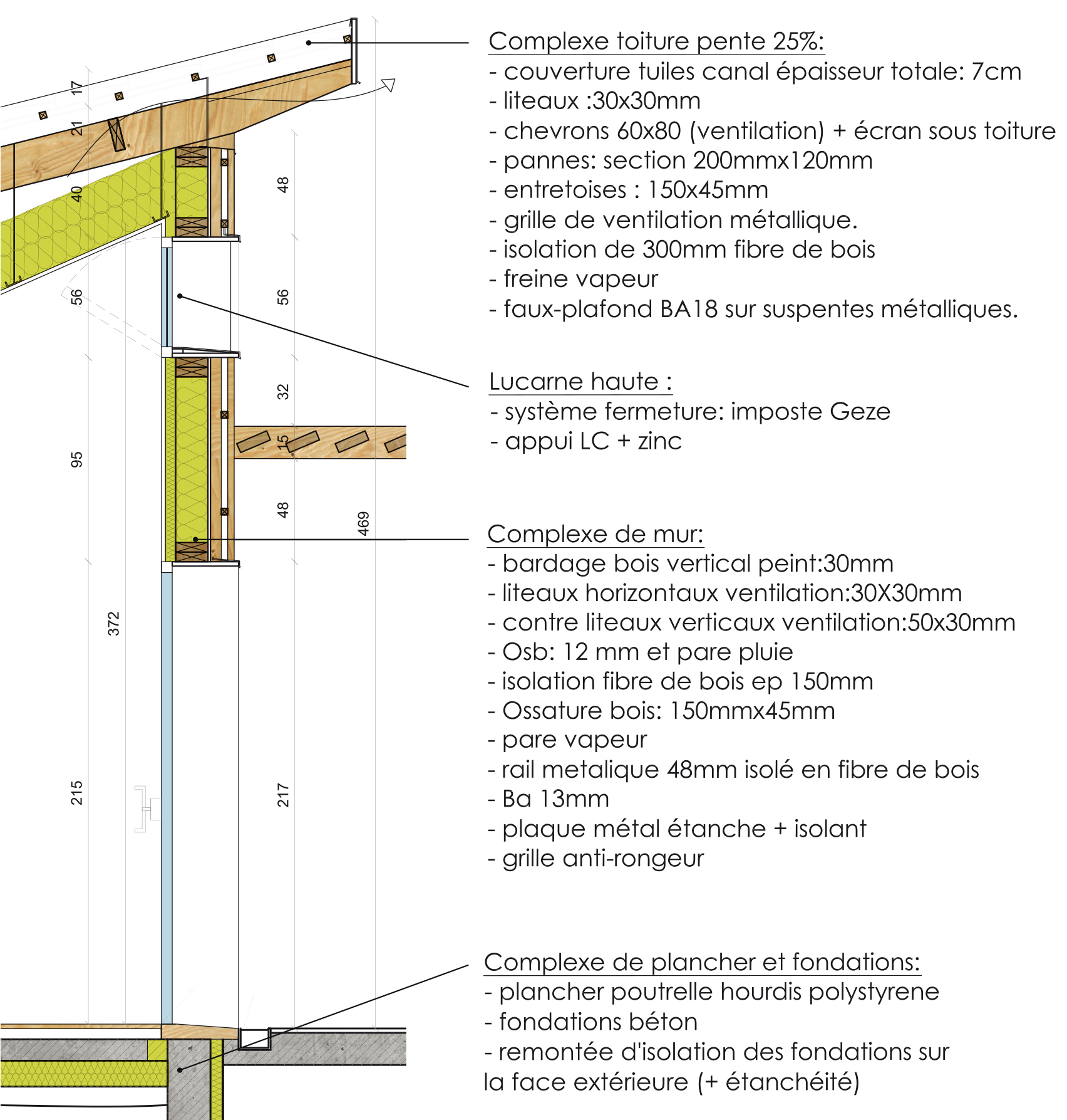 Approche environnementale : Le projet, qui a obtenu le coup de coeur du jury du concours bas carbone 2015, a été conçu selon les préceptes de l'architecture bioclimatique et bénéficie de protections solaires en façade sud sous forme de pergolas bois et débords de toiture. Une attention particulière a été portée au confort d'été sur ce projet : un comble ventilé a été mis en place afin d'éviter les surchauffes estivales et l'ensemble des logement est traversant.