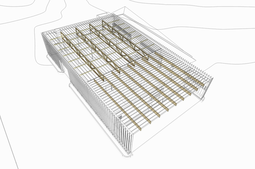 Descriptif technique : Constructivement, une assise béton au sol accueille l'enveloppe en bois -MOB, charpente, complexe de toiture-. L’acoustique des ateliers a été gérée par un pare-vapeur acoustique en sous face de toiture et un lattis bois formant piège à son. L’ensemble des MOB ont été ajourés, calepinés et profilés pour intégrer une menuiserie en polycarbonate continue sur toute la longueur des façades. Les poutres treillis bois d’une portée de 21m et le débord de toiture de 5,40m assuré par des poutres en Bois Lamellé Collé révèlent l’adaptabilité du matériau bois à l’usage des programmes tertiaires.