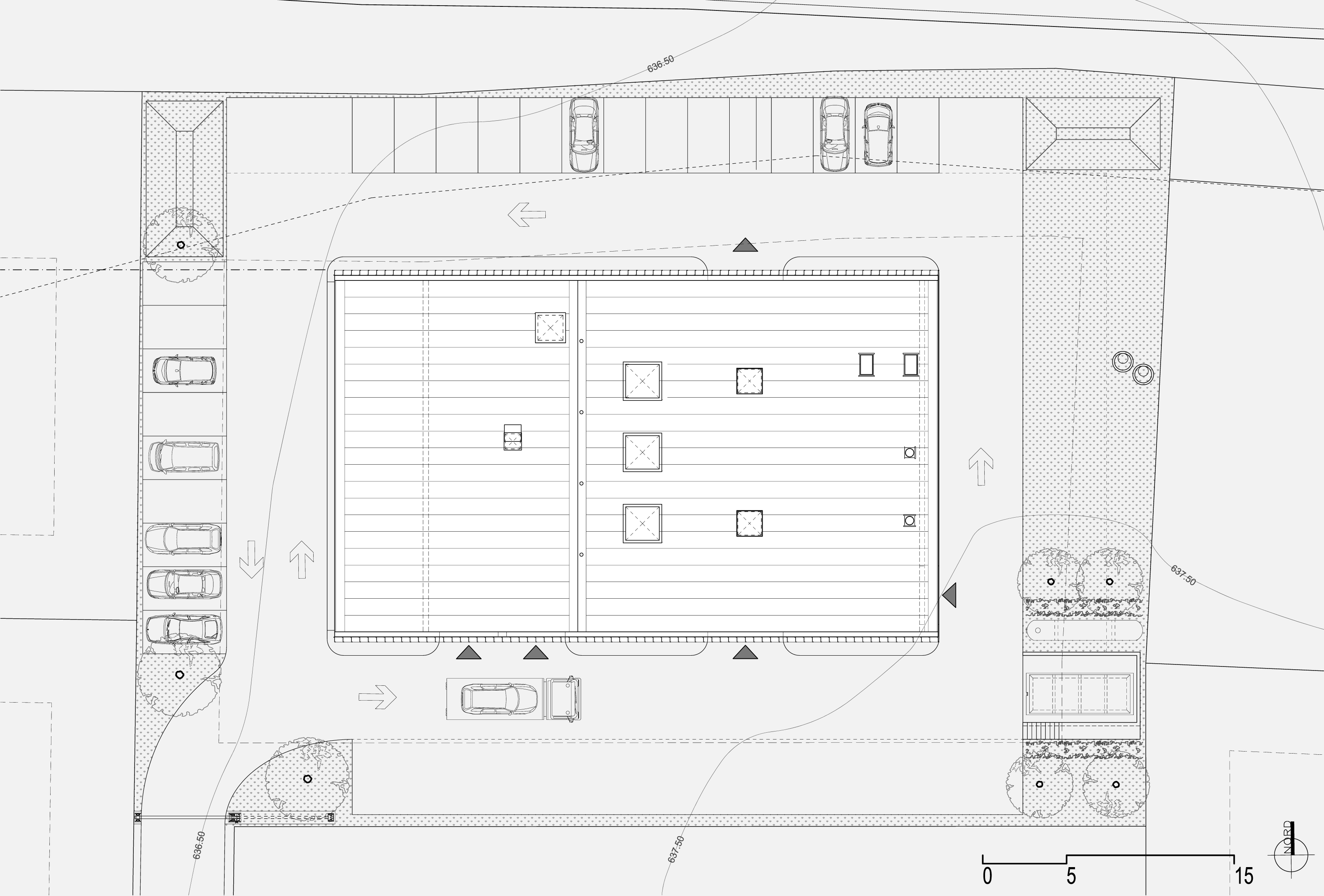 Approche environnementale : Privilégier une construction sur mesure et qualitative en zone d’activité permet de proposer des alternatives aux structures aciers habituelles. Savoir-faire et ressources locales peuvent alors être valorisés. Tous les bois sont laissés bruts. Ils sont protégés à l’extérieur dans ce but par un large débord de toiture. Les Murs à Ossature Bois ont été réalisés en essences locales. De nombreuses ouvertures en façade et en toiture limitent l’éclairage artificiel. Isolation, inertie du noyau central maçonné, et sur-ventilation naturelle par les portes sectionnelles garantissent un confort d'été.