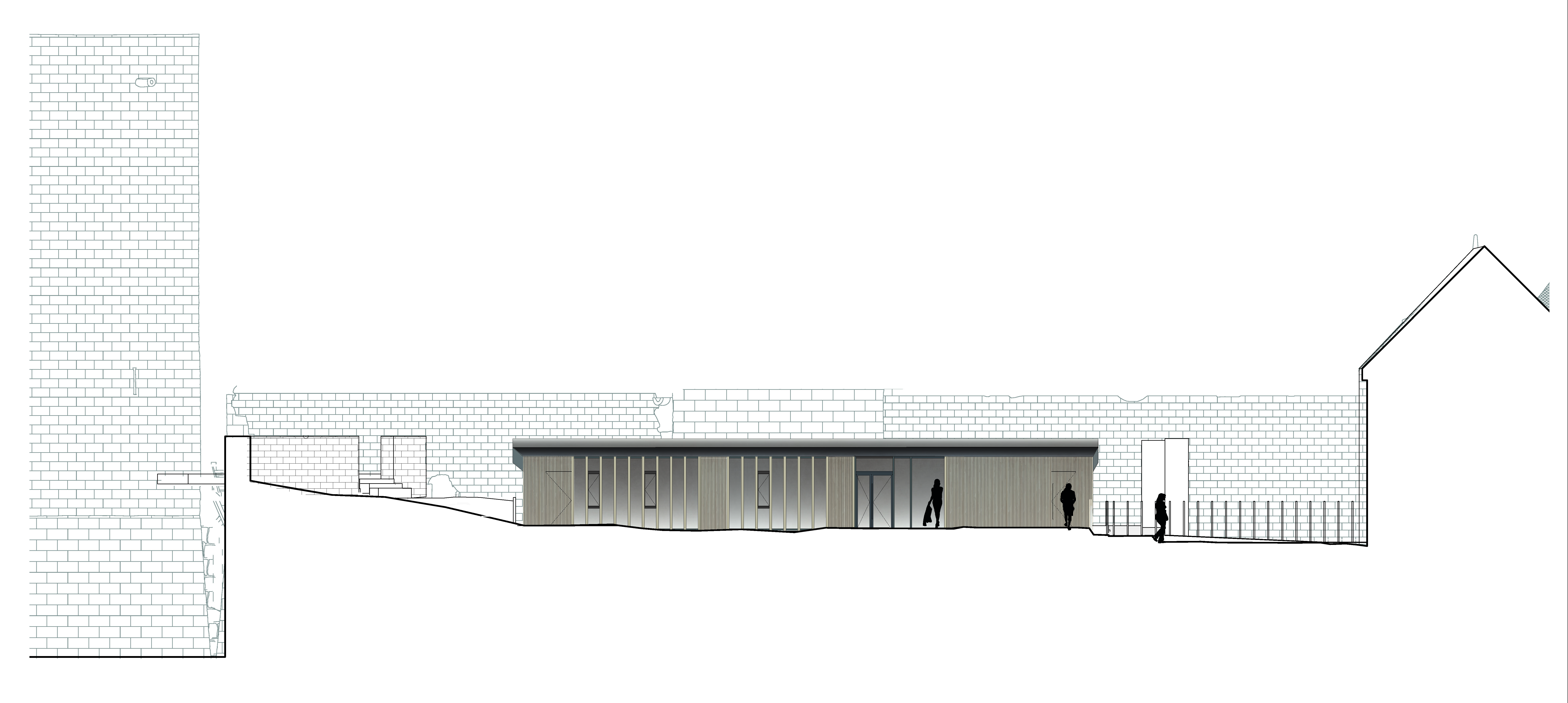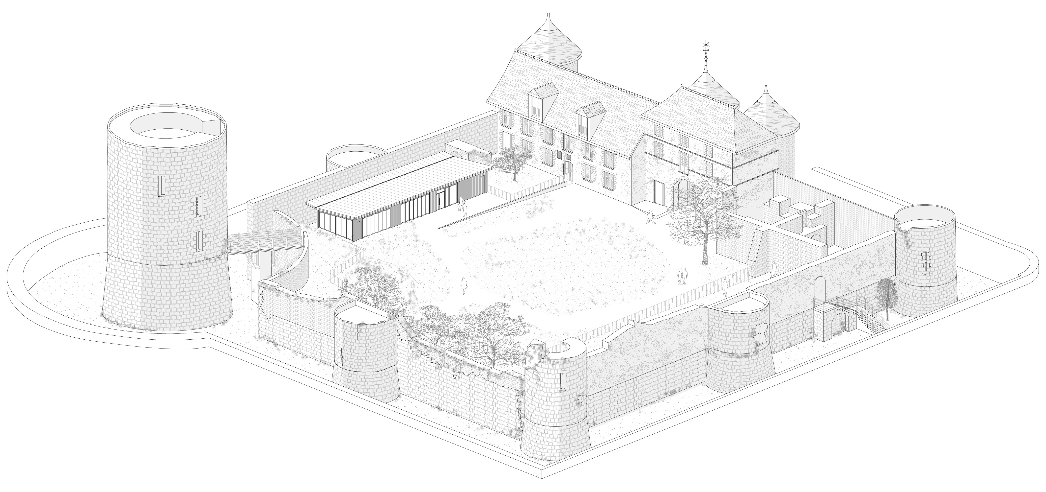 Le Château du 13e siècle est classé au titre des Monuments Historiques. Notre projet consiste en la construction la refonte de salles du musée existant et une extension. Elle comprend notamment un accueil, deux salles muséographiques et pédagogiques modulables. Dans la cour, le bâtiment est à la fois signal et révélateur du patrimoine qui l’environne. Nous avons opté pour une architecture ouverte sur le paysage et légère en bois, qui dialogue avec le contexte et fait référence au bâti médiéval. Ainsi nous redonnons à lire les différentes strates de l’histoire à travers l’architecture.