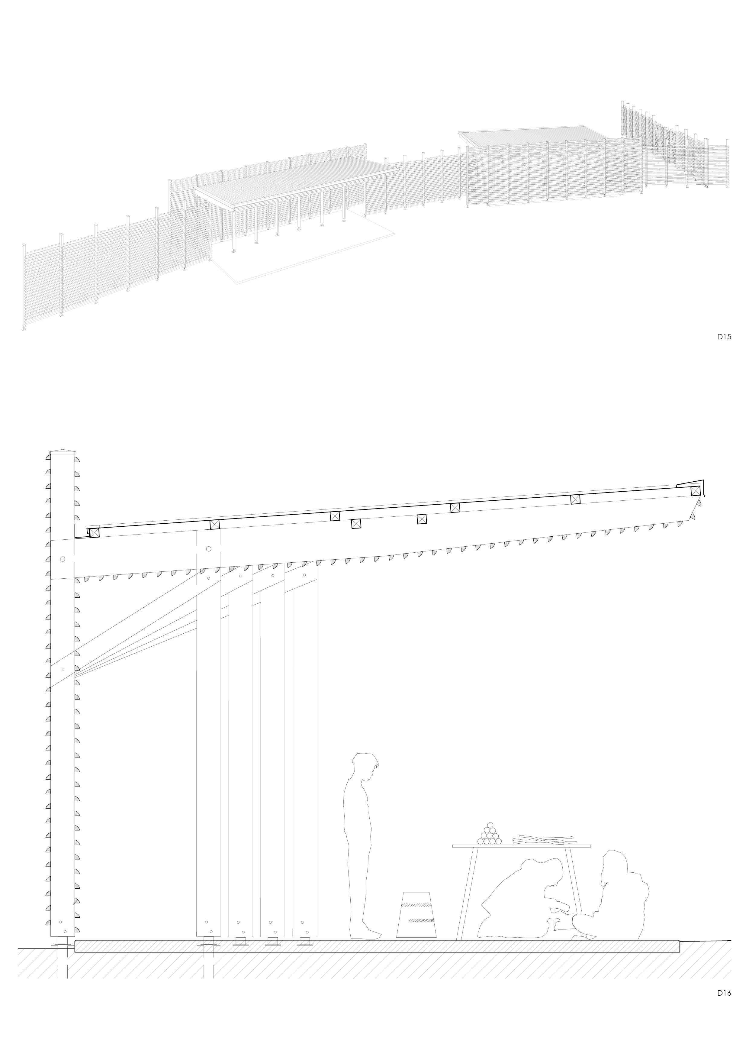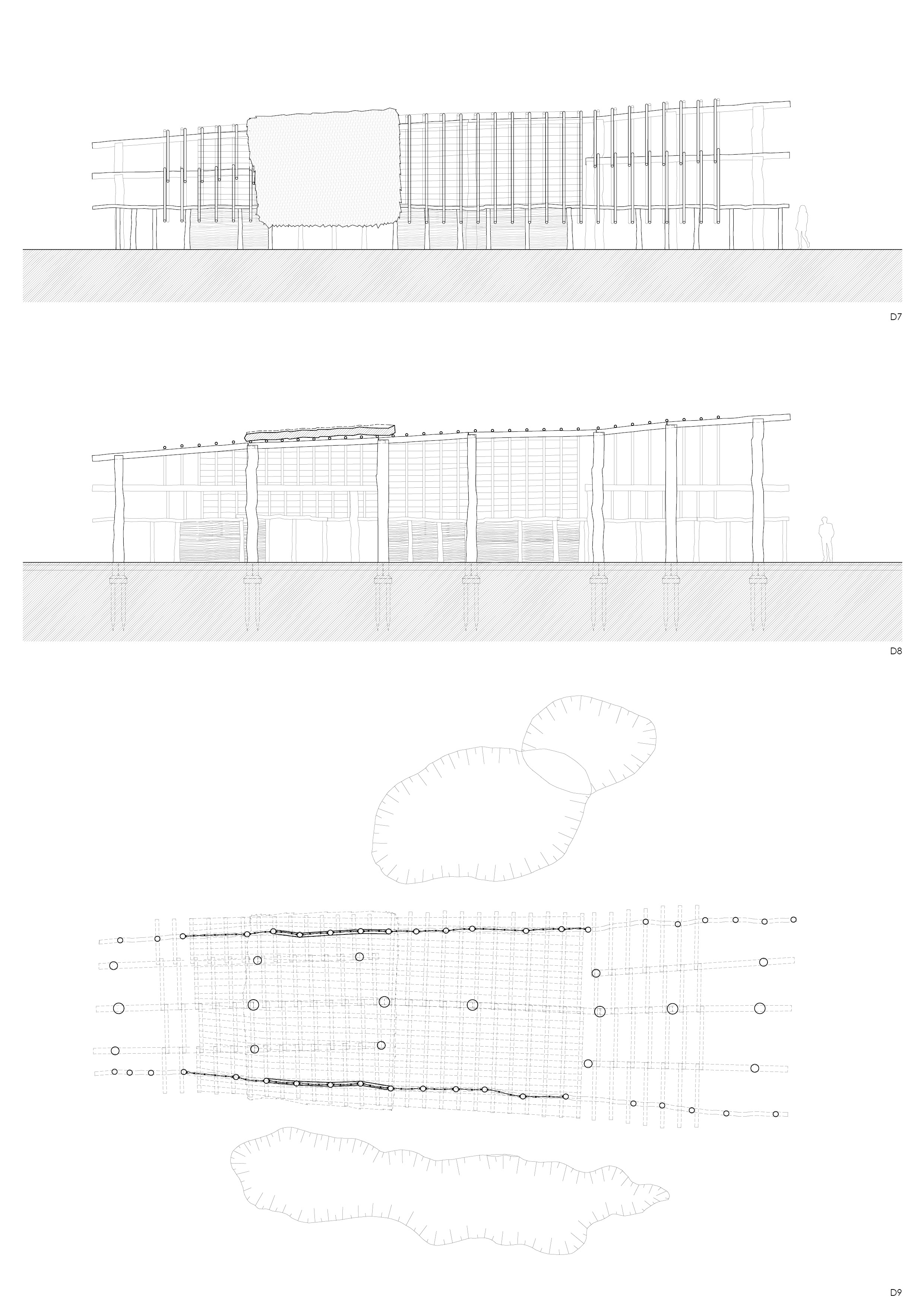 Situé en zone naturelle d'intérêt faunistique et floristique, le projet est fondé sur des vis métalliques afin de limiter son impact sur le terrain naturel.Le projet est isolé et a donc été entièrement pensé comme autonome en énergie. Il intègre des panneaux photovoltaïques, des cuves de récupération des eaux de pluies et des toilettes sèches permettant de faire fonctionner les équipements et d'accueillir le public. L'aménagement de cheminements paysagers structure la découverte du site à travers la forêt vers la clairière. Le chantier est réalisé sous la forme d'un chantier d'insertion.