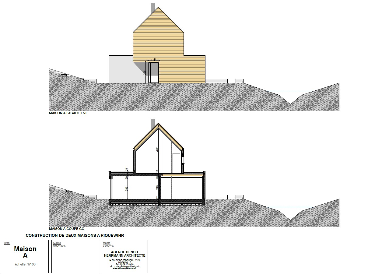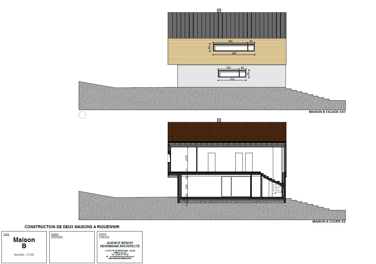 Approche environnementale : Nous avons un fil conducteur dans la manière de concevoir nos projets. Ces 2 maisons les représentent bien. Nous proposons des constructions pérennes et demandant très peu d'entretien. La solution : la brutalité des matériaux tel le béton de site et les bardages non traités qui vieilliront naturellement. Les constructions sont très bien isolées avec un excellent confort tant en hiver qu'en été, grâce au principe de construction hybride avec un rez-de-chaussée en béton et un étage en ossature bois. L'isolation des constructions est intégralement réalisé avec de la laine de bois souple.
