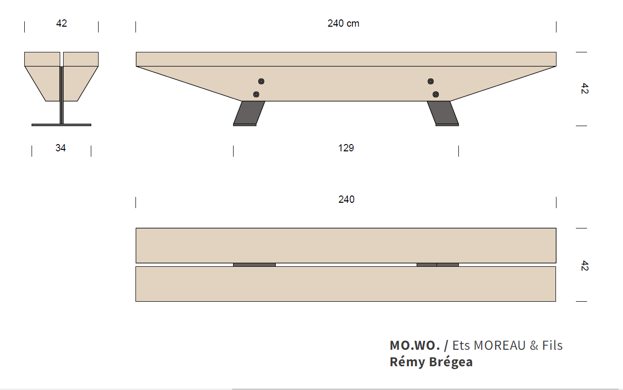 Pour sa première collection avec la scierie familiale Moreau, le designer Samuel Accoceberry a conçu Beam, des bancs en chêne français certifié, constitués d’un tronc débité en deux parties et assemblé autour de pieds en métal et/ou bois. L’ensemble joue entre des assemblages issus des techniques de charpente et des proportions pures et généreuses qui subliment les veines du bois. Destinés pour l’intérieur comme pour l’extérieur, les Beam réalisables sur mesure peuvent être fixés au sol. Ils proposent une finition brute ou brûlée avec finition huilée