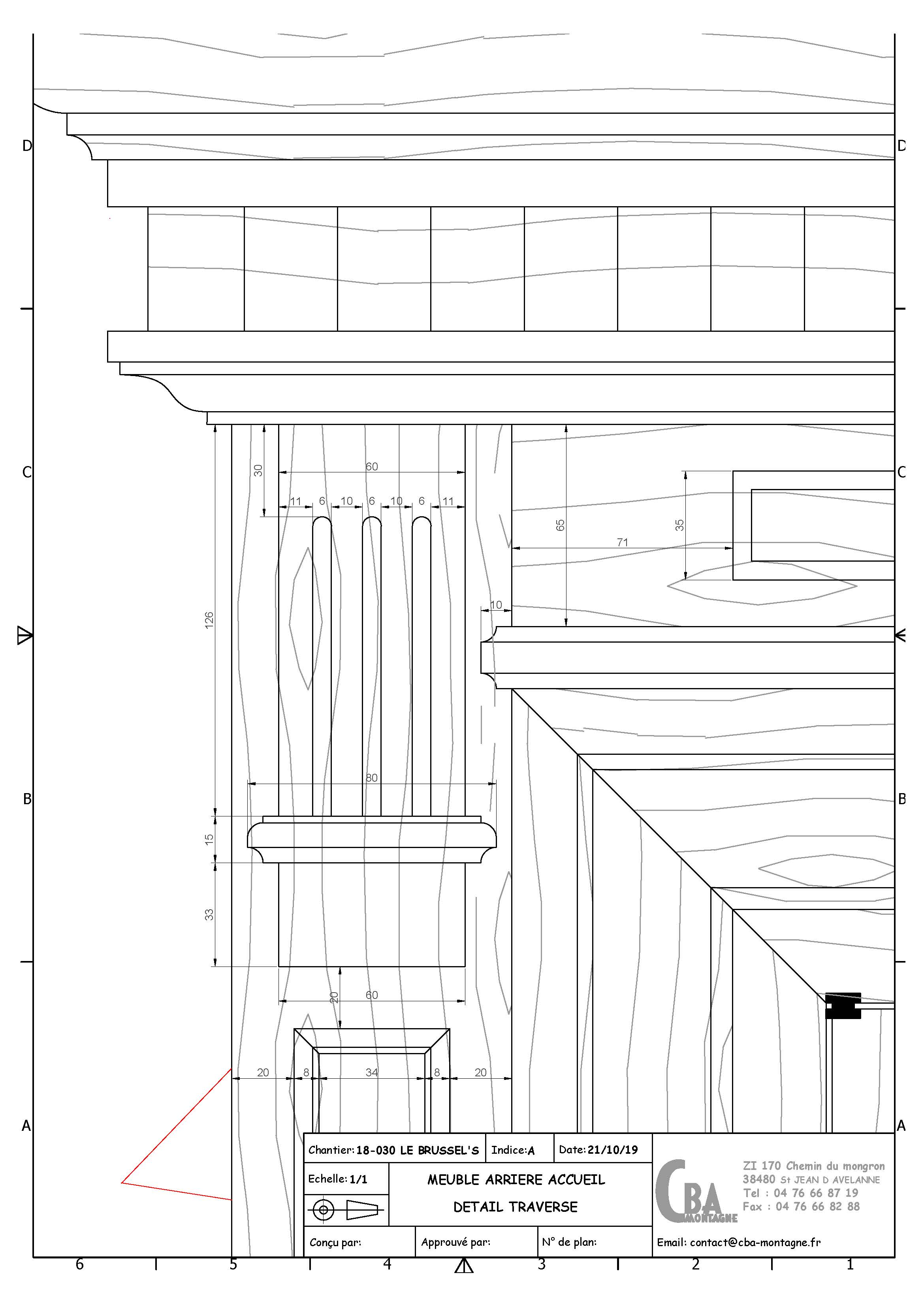 Approche environnementale : La plupart du bois (chêne massif) ayant servi à la menuiserie et à l'agencement est issue d'une scierie située Bourgogne-Franche-Comté. L'approvisionnement est fait uniquement dans cette région. Le bois a été transformé au sein de l'atelier de CBA Montagne à Saint-Jean-d'Avelanne (38).