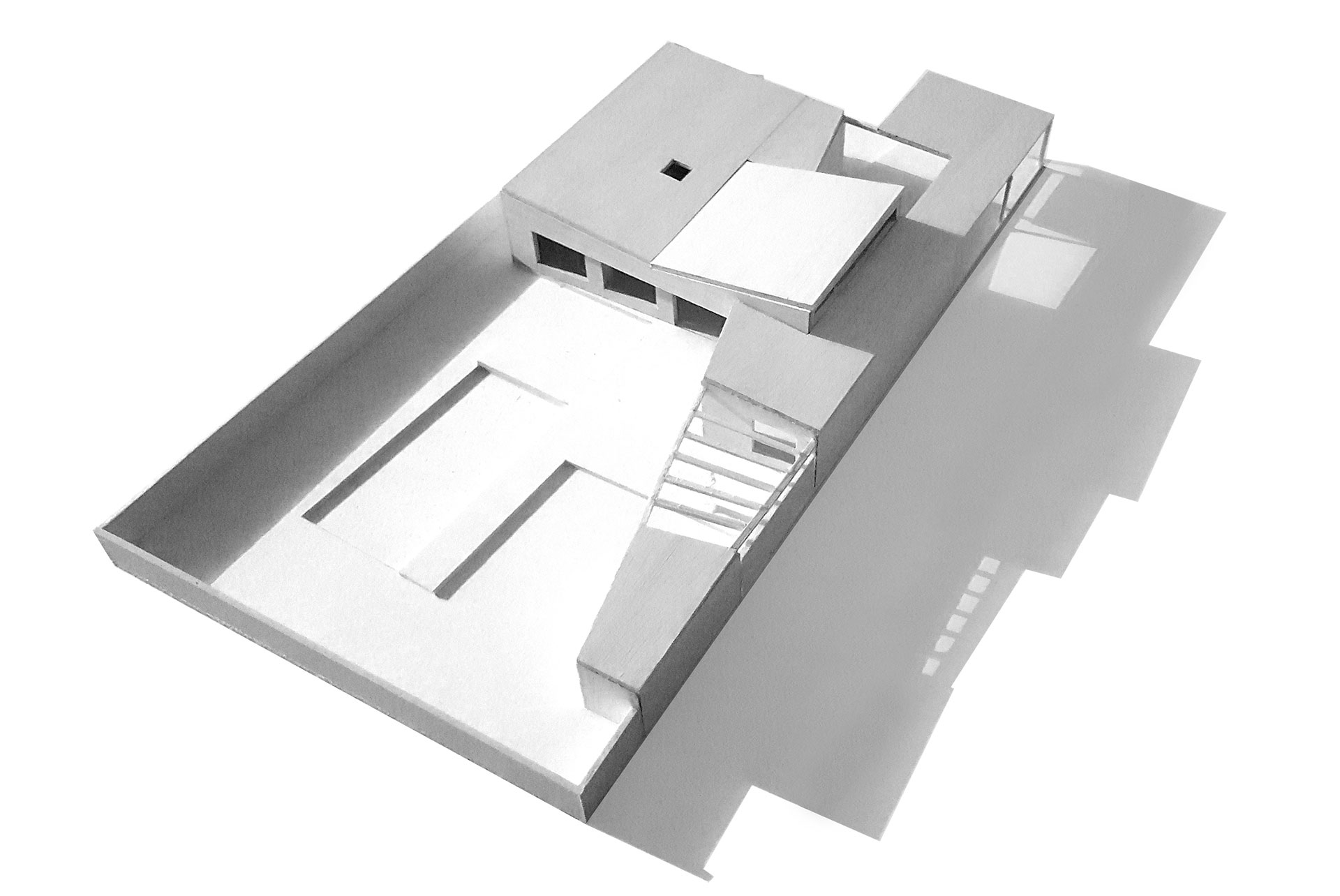 Le terrain, d’une surface de 700 m²,est bordé au Sud par une haie bocagère. La maison est implantée avec un recul réglementaire. Un décalage est créé dans la volumétrie pour disposer stationnements et accès extérieurs en limite Est. Le projet se déploie au cœur de la parcelle le long de la limite Est, une annexe est reliée au volume principal par une pergola bois. Le profil de toiture permet de disposer de panneaux solaires, de faire pénétrer la lumière par un bandeau vitré qui génère une sur-hauteur dans la pièce de vie. Les ouvertures amènent un lien privilégié au jardin et au paysage.