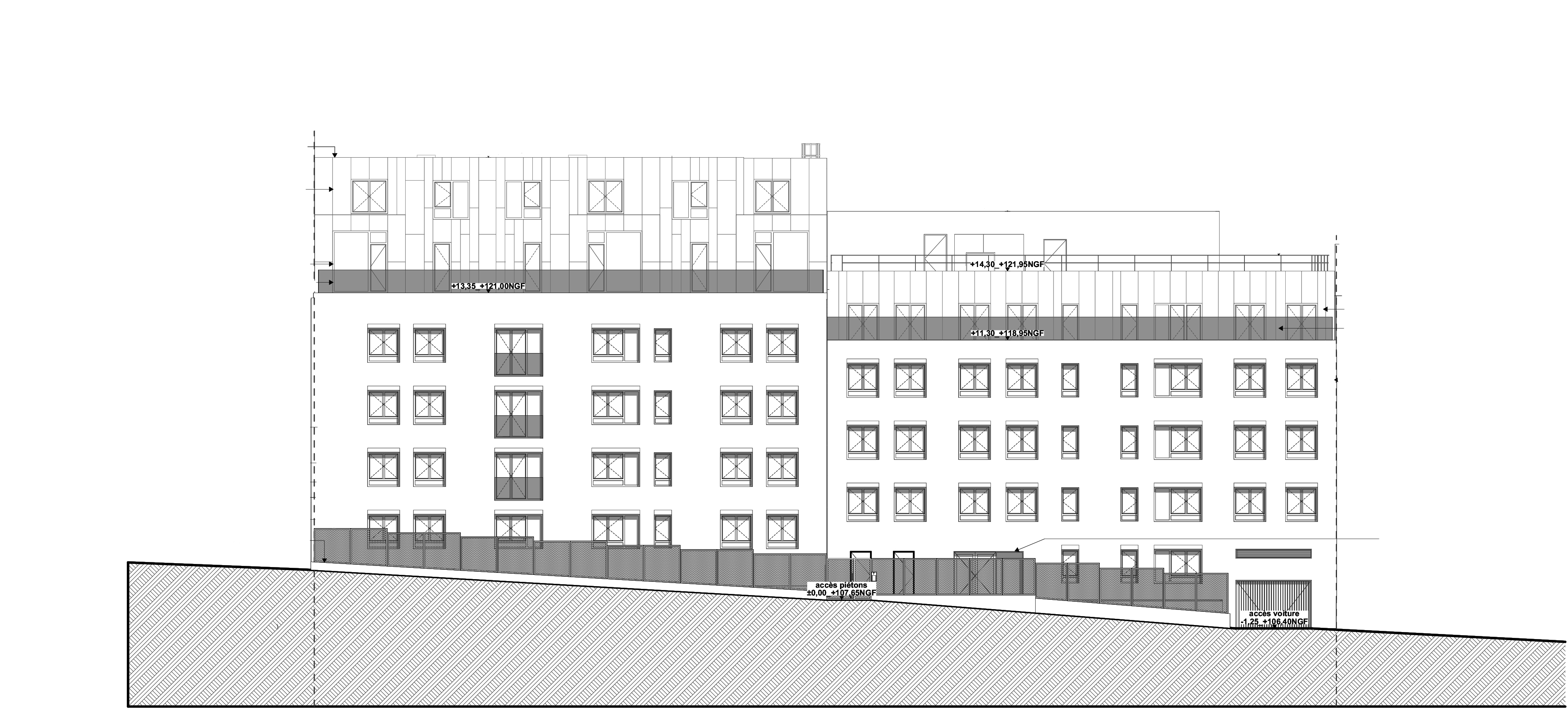 Le projet se situe dans le quartier de Belleville rue des Rigoles à Paris 20ème. L'ensemble immobilier existant regroupe 2 bâtiments construit en 1980. Il s'agira de la réhabilitation énergétique de cet ensemble, de construire 3 logements supplémentaires de type T3 duplex par surélévation et de créer 6 logements en fond de parcelle de type T2 et T1.