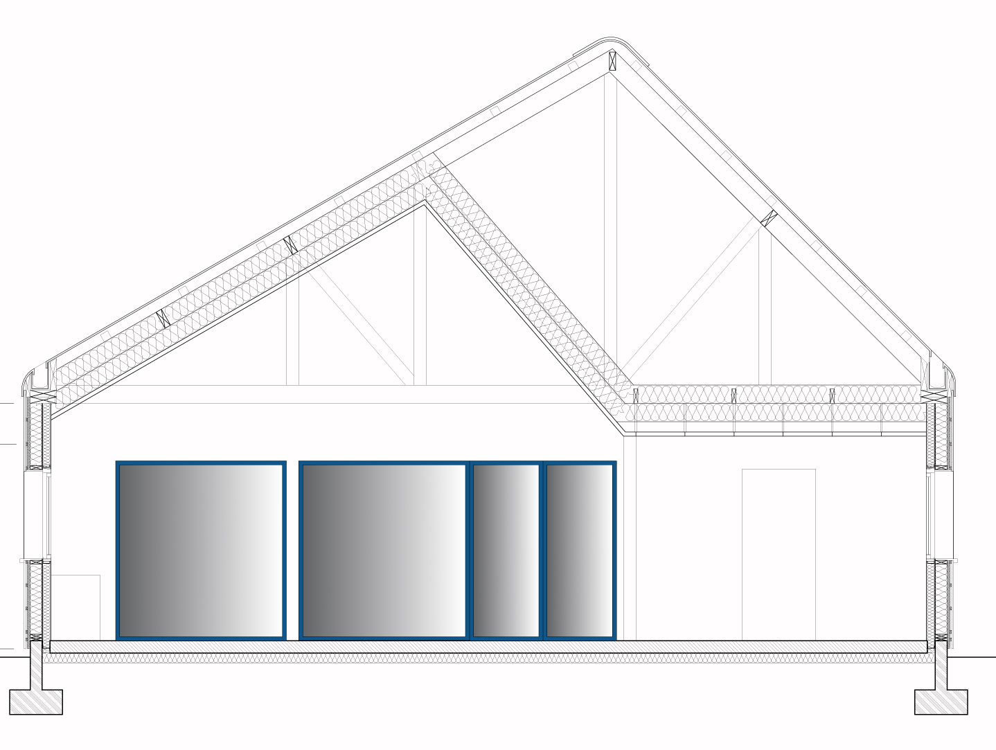 Approche environnementale : A l'exception des fondations et du plancher bas toute l'ossature est réalisée en bois massif tandis que l'isolation est assurée par des matériaux recyclés ou bio-sourcés. Le confort thermique et visuel est complété par des brise-soleil orientables encastrés dans le bardage au droit des baies SUD. L'ambiance acoustique est soignée grâce à un faux-plafond absorbant en panneaux de fibres de bois. De larges débords de toit à l'EST et à l'OUEST protègent les points d'accès au bâtiments, les bardages bois et offrent des espaces extérieurs abrités aux employés et visiteurs.