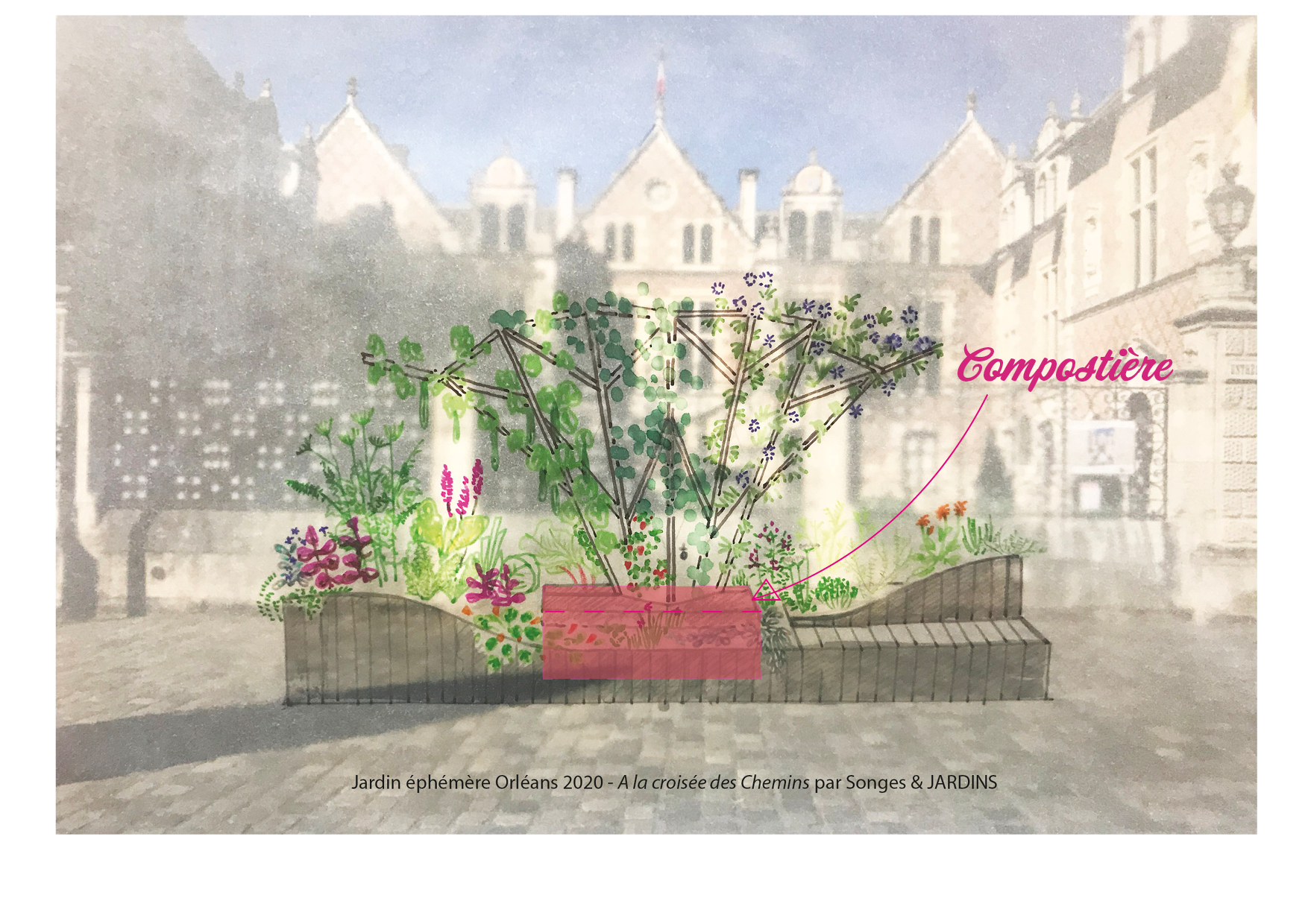 Dans le composteur central la terre est séparée des compostables par une grille pour permettre une diffusion lente des nutriments vers la terre et ainsi nourrir les végétaux.