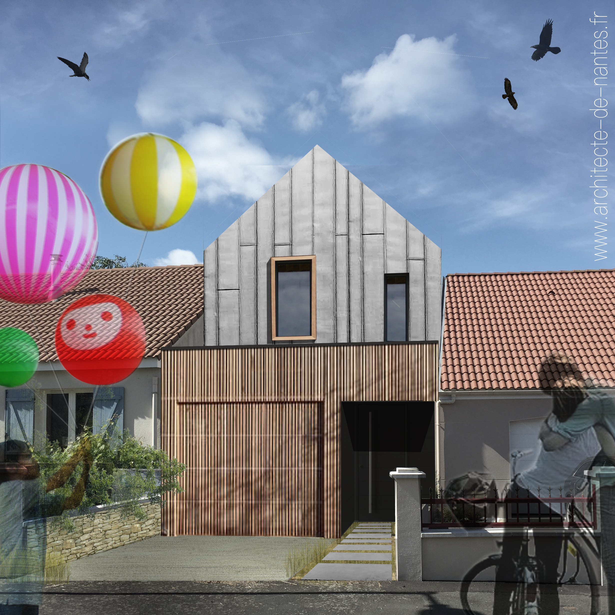 Cette maison de ville contemporaine, vient s'implanter dans un ancien chemin potager de 150m2. Il s’agit d’un terrain atypique d'une largeur de 4,50m. Afin de bénéficier de largeur de pièces fonctionnelles, la solution en ossature bois, c'est donc imposé. Naturellement, la maison est réalisée avec un étage afin d'exploiter le potentiel du terrain. Ce projet répond à un renouvellement urbain des zones pavillonnaires et à l'enjeu de la densification actuelle.