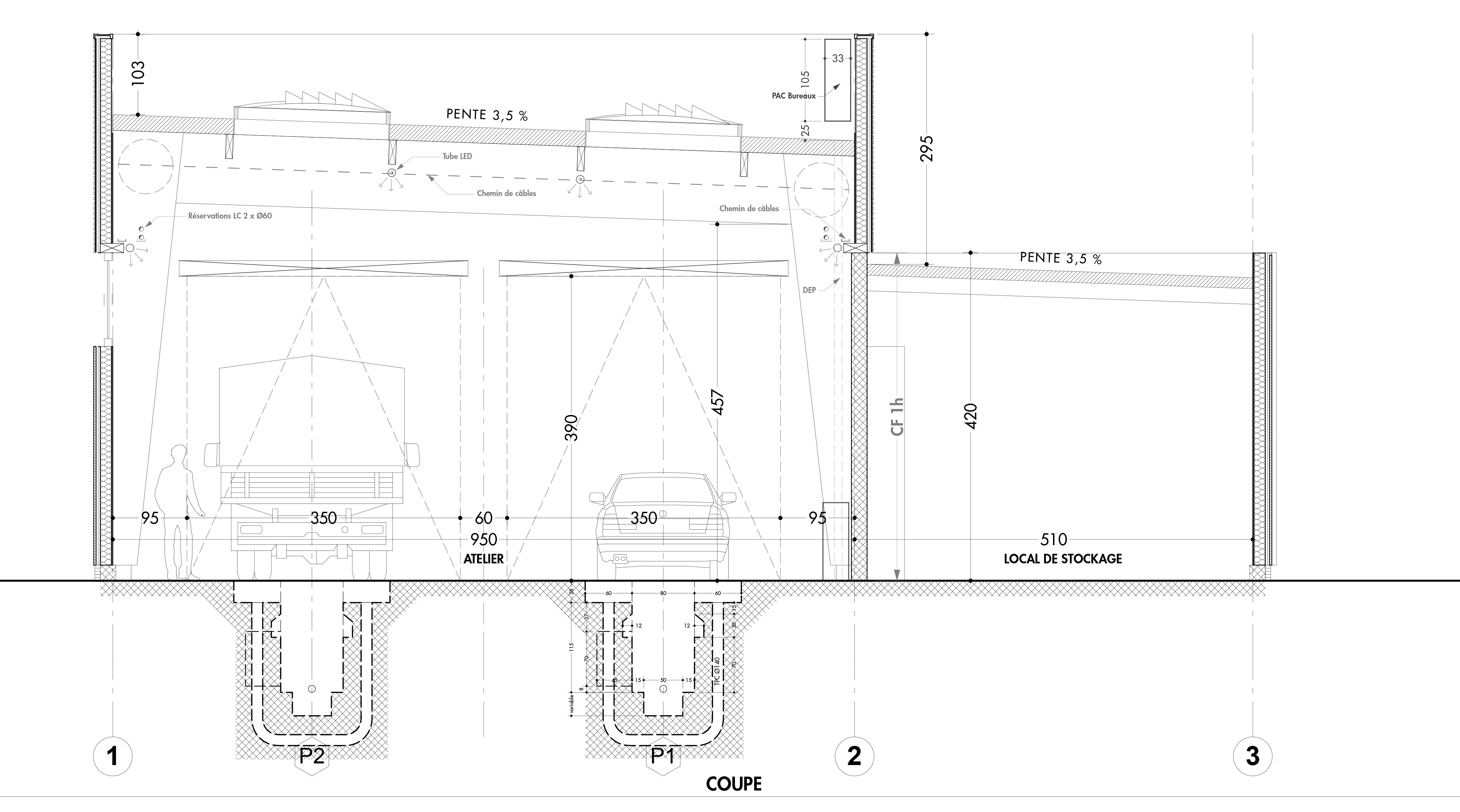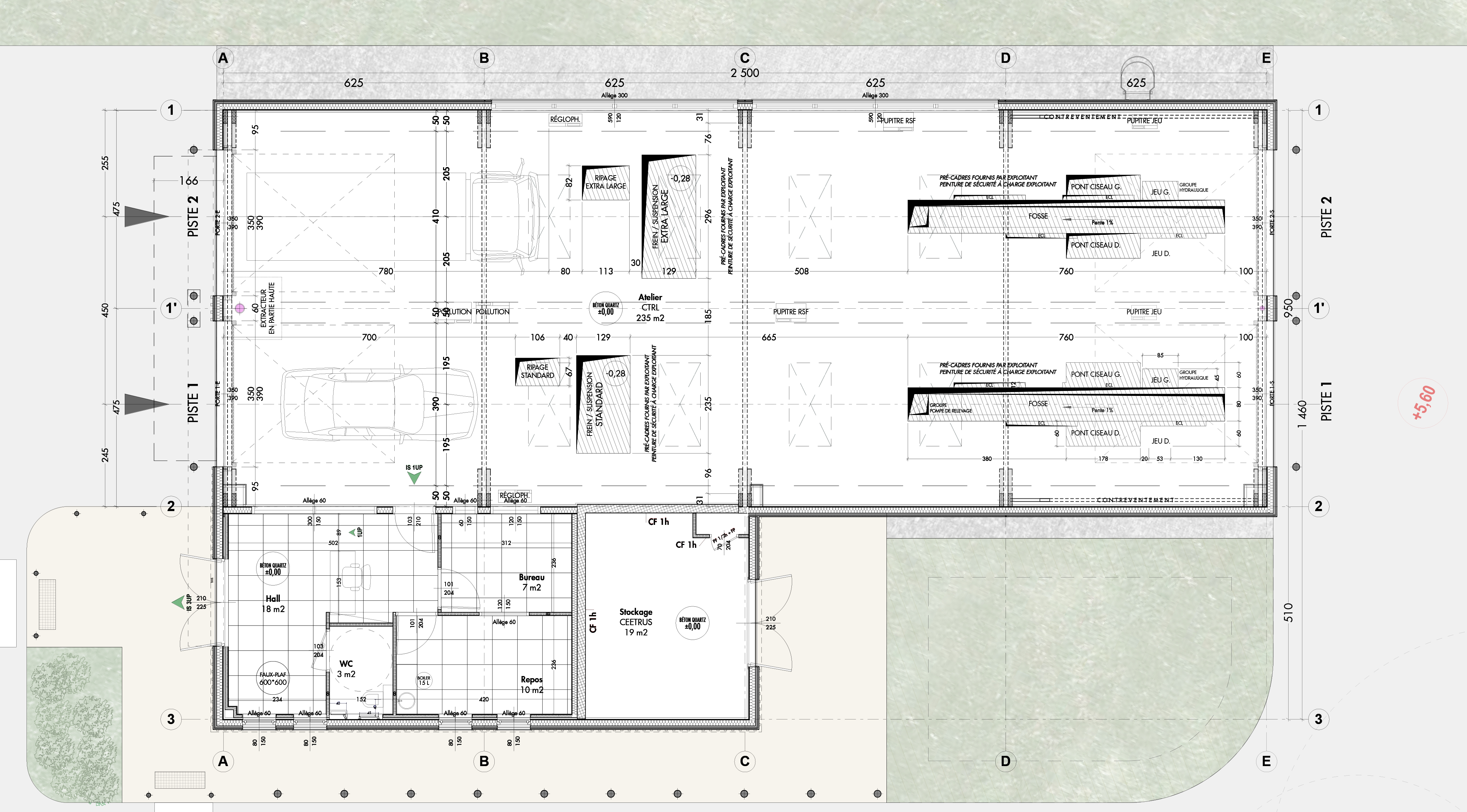 Pour son nouveau bâtiment de contrôle technique auto situé sur le site de Bordeaux Lac, Ceetrus a fait le choix innonvant d’une construction bois, permettant ainsi de réduire drastiquement l’emprunte carbone du chantier. Le bâtiment se compose de deux volumes simples, l'un dédié à l'atelier et l'autre à l'accueil et aux bureaux. Les façades mêlent bois et aluminium. L'utilisation de l'aluminium a été limitée aux éléments techniques (menuiseries, portes, casquettes, couvertines) ; de couleur sombre gris anthracite, ils contribuent à une plus grande mise en valeur des éléments en bois.