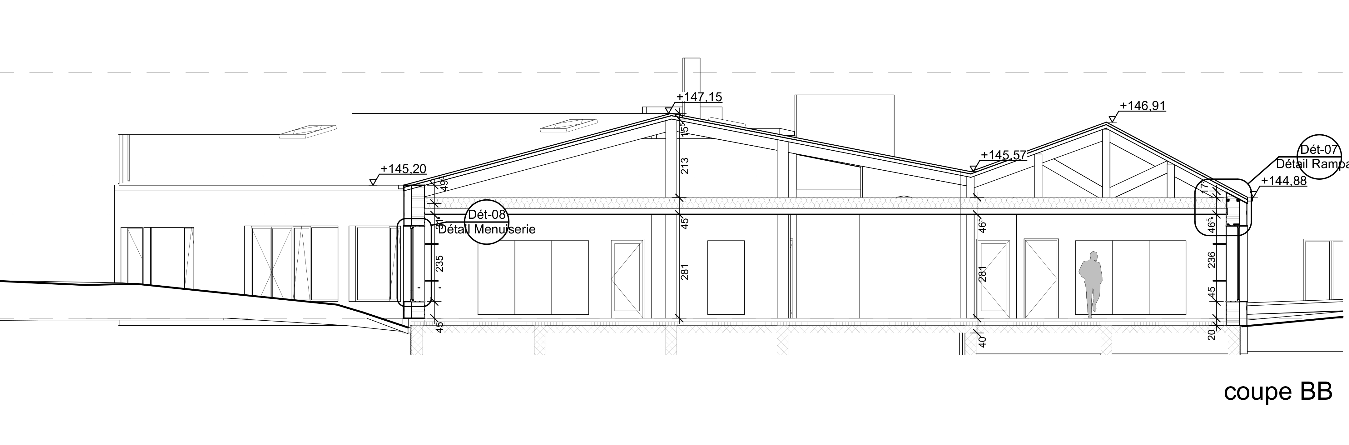Descriptif technique : Mission complète + aménagement intérieur + démarche participative // Temps des études : 12 mois / temps de chantier : 18 mois // Travail avec des entreprises locales // Matériaux sains et locaux : Charpente bois épicéa • poteaux bois moisés • murs à ossature bois et remplissage paille • isolation acoustique en coton recyclé • bardage en cèdre de pays • brise soleil orientables • aménagement intérieur en panneaux de 3 plis épicéa • ventilation double flux • Indice final de perméabilité à l'air : 1.18 m3/h.m2 PEFC (Gestion forestière durable)