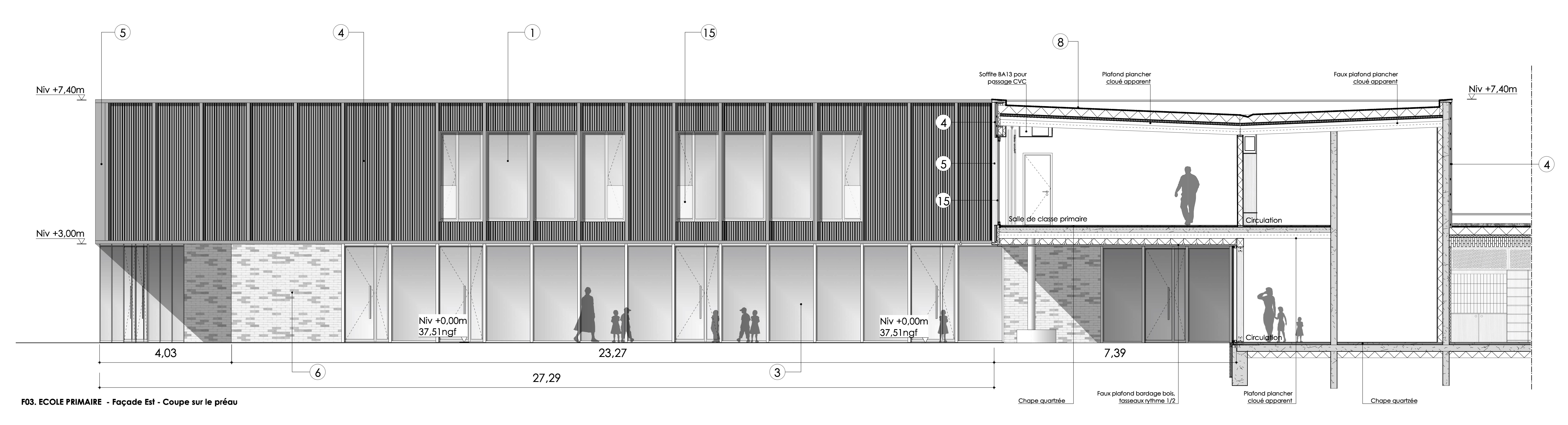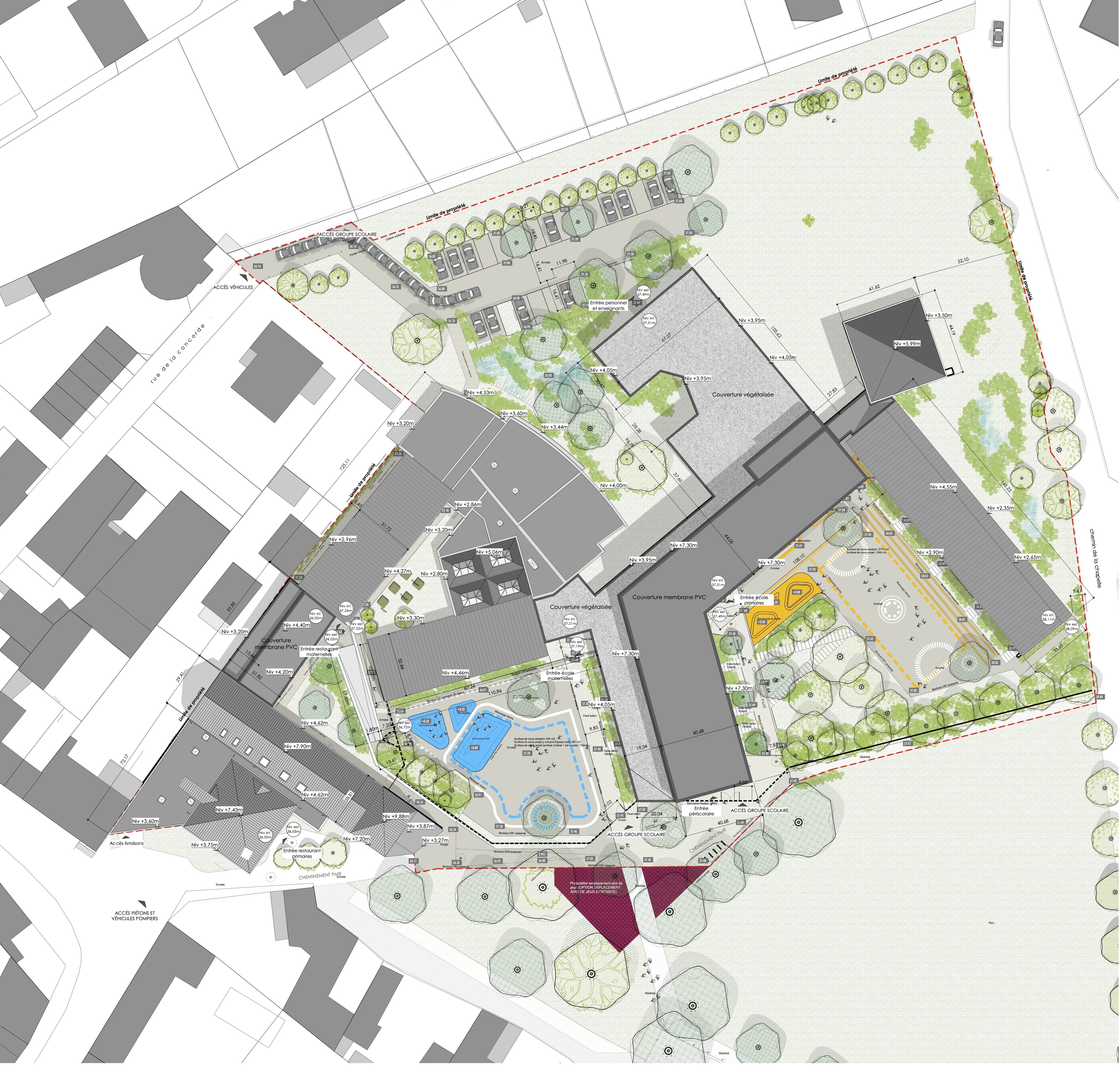 Ce projet est l’occasion, au-delà de la seule réponse fonctionnelle, de recomposer cet ensemble fortement hétérogène tant dans son fonctionnement que dans son écriture architecturale. L'objectif que nous nous sommes fixé dans ce projet, a été de redonner une cohérence au site sur trois plans: -Du point de vue du site par sa présence et son articulation au sein du tissu urbain ; -Du point de vue fonctionnel afin que les enfants et les équipes pédagogiques y trouvent leur épanouissement -Du point de vue architectural pour affirmer la présence de l’équipement et en faire un marqueur urbain