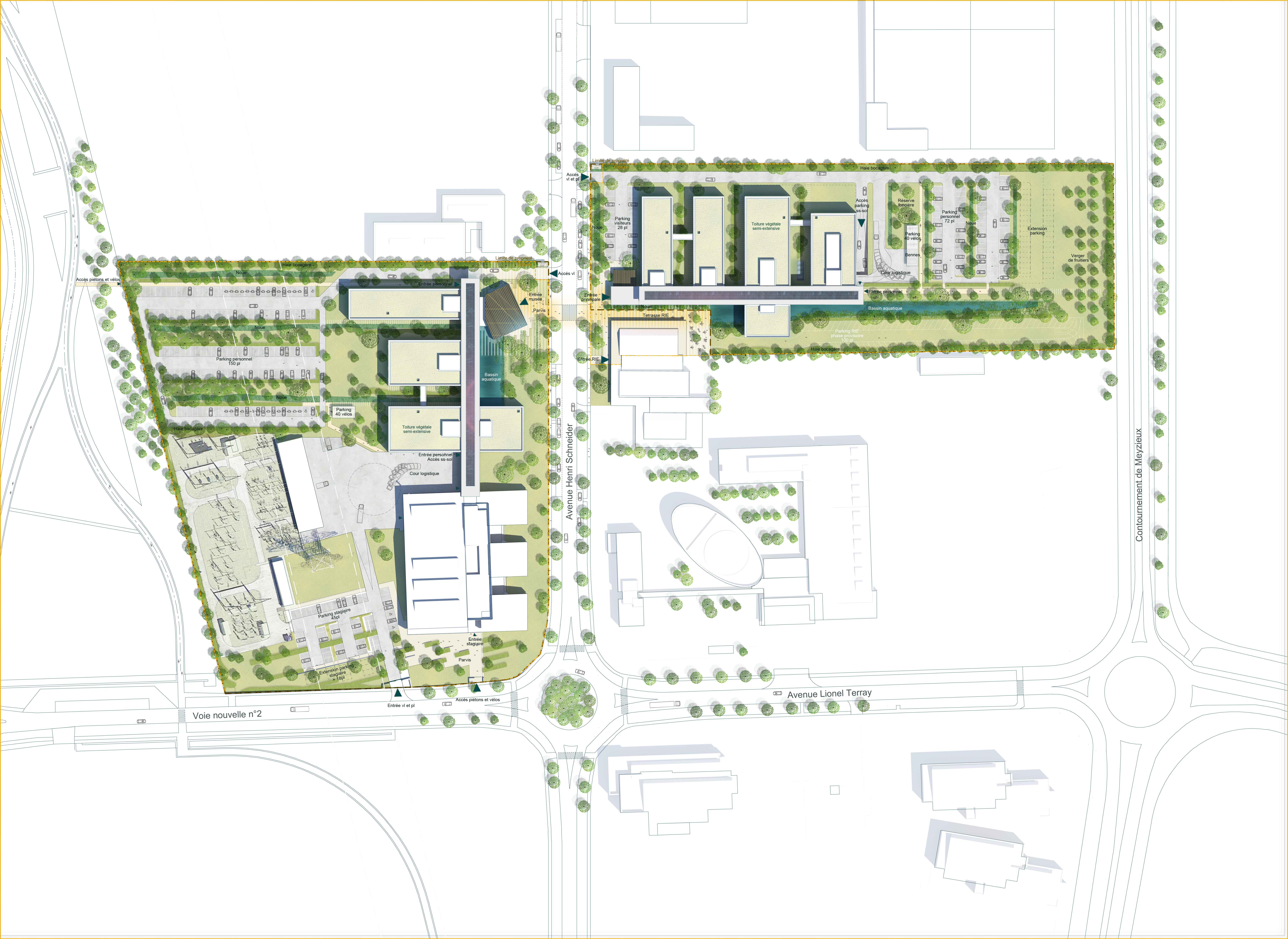 Approche environnementale : L’adaptabilité et l’évolutivité des bâtiments ont guidé la conception architecturale. Les matériaux sont sélectionnés pour promouvoir le juste matériau au bon endroit pour un usage adapté, une durée de vie cohérente et un impact carbone limité avec un large recours au bois. Les aménagements paysagers et les bassins enrichissent la biodiversité du site (Label Biodiversity). Le projet utilise la récupération de chaleur sur les systèmes de refroidissement des locaux de process inhérents à l’activité de RTE ainsi que la production d’énergie avec plus de 1000 m² de panneaux photovoltaïques